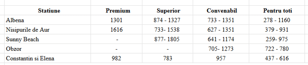 Cat mai costa o vacanta in Bulgaria in 2026 daca o cumper... 3 February 2026 Bulgaria Postat de travel planner Planificarea vacantelor in avans este o strategie preferata de multi dintre turistii romani care doresc sa obtina predictibilitate, cele mai bune preturi si conditii unice de rezervare, iar litoralul bulgaresc ramane una dintre cele mai cautate destinatii in acest sens. In plus, luna februarie poate fi un moment bun pentru achizitionarea unei vacante: scapi de o grija rezervand vacanta pentru la vara si profiti totodata de multiplele avantaje ale early booking-ului. In aceasta pagina vei gasi informatii despre: Pretul unei vacante litoral Bulgaria in early booking februariePretul unei vacante litoral Bulgaria in functie de categoria hotelului Alte cheltuieli de luat in calcul pentru vacanta pe litoralul bulgaresc Proximitatea fata de casa, serviciile atractive, conditiile bune de cazare, preturile convenabile in cazul ofertelor de tip early booking si mai ales conditiile de rezervare foarte avantajoase – toate reprezinta motive plauzibile pentru alegerea unei vacante pe litoralul din Bulgaria. In cele ce urmeaza gasesti amanunte referitoare la pretul unei vacante pe litoralul bulgaresc in functie de categoria hotelului potrivit pentru tine, in functie de perioada aleasa, in functie de momentul in care o achizitionezi si alte detalii despre costuri extra. Pretul unei vacante litoral Bulgaria in early booking februarie Achizitionarea unei vacante in perioada de early booking (in cazul de fata – luna februarie 2026) ofera multiple plusuri, printre care preturile cu pana la 30%, in unele cazuri chiar 35-40% mai mici, acces la o serie de conditii de rezervare unice, dar si o mai mare siguranta in ceea ce priveste disponibilitatea locurilor (multe dintre hotelurile apreciate se ocupa foarte repede in plin sezon). La Travel Planner, poti alege sa achiti un avans de doar 10% si restul sumei la vara, iar printre beneficii se numara si protectie imbolnavire copil, cel mai bun pret garantat, conditiile superflexibile de rezervare, reduceri de 15% la asigurarile de calatorie, pretul minim, reduceri exclusive in Bulgaria. Atentie, o parte dintre aceste conditii de rezervare expira la finalul lunii februarie. Despre toate acestea poti citi mai multe informatii in articolul: Ce pierzi daca nu achizitionezi vacanta prin early booking Pretul este dictat si de categoria hotelului, dar si de perioada in care alegi sa-ti faci vacanta (aspecte pe care le vom aborda in capitolul urmator), insa per total, daca alegi sa cumperi in early booking februarie, poti scuti chiar si cateva sute de euro in cazul hotelurilor din categoriile premium si superior. In plus, scapi de o grija cu tot ce inseamna planificarea unei vacante in plin sezon. Prin ofertele early booking ai siguranta pretului, indiferent de scumpirile ulterioare, siguranta locului la hotelul preferat, conditii de rezervare unice, precum avansul de doar 1o% si restul la vara, alaturi de alte beneficii, plus suficient timp la indemana pentru a-ti organiza vacanta in cel mai mic detaliu 🙂 *preturile pentru vacantele in Bulgaria au crescut fata de aceeasi perioada a anului trecut cu procente de circa 5–10%. O noua crestere a preturilor din partea hotelierilor este posibil sa se remarce si in primavara. Bulgaria a adoptat moneda euro de la 1 ianuarie, iar aceste reduceri din prezent vin pe fondul inflatiei generate de trecerea la euro. Rezervarile efectuate in aceasta perioada reprezinta un deal bun, respectiv o modalitate de a securiza o vacanta cu niste beneficii utile si care fac diferenta. Pretul unei vacante litoral Bulgaria in functie de categoria hotelului Tariful unei experiente la mare in Bulgaria variaza, in mod evident, in functie de categoria hotelului ales. Pe site-ul travelplanner.ro, utilizatorii au posibilitatea de a selecta dintre 4 categorii de hoteluri, ordonate in functie de calitate: Premium, Superior, Convenabil si Pentru toti. Fiecare dintre acestea a fost atent alcatuita de catre consultantii Travel Planner, in urma experientelor personale, ale turistilor si in urma feedback-ului primit de la clientii Travel Planner. Mai jos gasesti un tabel cu preturi simulate in perioada de early booking februarie, pentru fiecare dintre cele 4 categorii de hoteluri, pentru o vacanta de 5 nopti, 2 adulti, in diferite perioade ale sezonului cald. Dupa cum se poate observa, daca o achizitionezi in early booking februarie, o vacanta de 5 nopti pentru 2 persoane in varf de sezon (iulie-august) costa la un hotel premium in jur de 1500 euro, la un hotel superior in jur de 1150 euro, la un hotel convenabil in jur de 900 euro, si la un hotel pentru toti in jur de 670 de euro. ATENTIE, acestea sunt preturile aferente ofertelor de early booking valabile pana la finalul lunii februarie 2026. * Majoritatea hotelurilor se afla in jurul pretului dintre paranteze, marcat in tabel cu *. Un pret considerabil mai mare de atat poate reflecta o serie de servicii suplimentare sau poate fi, intr-adevar, prea ridicat. Un pret mult prea mic fata de aceasta valoare poate fi un pret realmente foarte bun sau poate reflecta calitatea serviciilor.De aceea, in astfel de situatii, iti recomandam sa ceri mai multe informatii consultantului tau Travel Planner, care prin experienta acumulata te poate indruma catre o alegere potrivita din punct de vedere al raportului calitate/pret. *Preturile sunt exprimate in euro, au fost simulate la data de 3 februarie 2026 si pot suferi modificari pe parcurs. Spre exemplu, o vacanta de 5 nopti, 2 adulti, in intervalul 01-06 iunie, la Hotel GRIFID Noa de 5 stele (categoria Premium, camera DELUXE) costa, in early booking februarie, 1253 euro, un pret cu 36% mai mic comparativ cu acelasi pachet cumparat in plin sezon. O vacanta de 5 nopti, 2 adulti, in intervalul 12-17 iunie, la Hotel Astoria (ex Riu) Nisipurile de Aur de 4 stele (categoria Superior) costa, in early booking, 873 euro, un pret cu 24% mai mic comparativ cu acelasi p