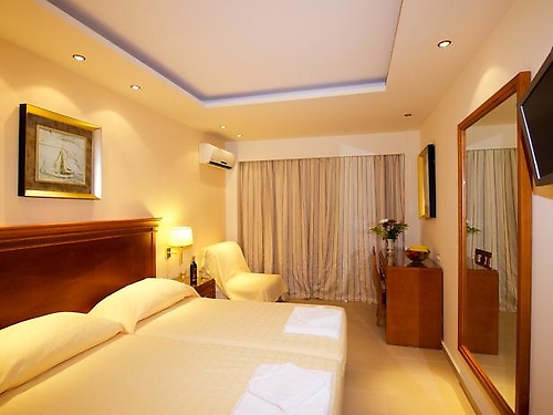 : hotelul are camere duble cu vedere la mare sau la gradina si sunt prevazute cu aer conditionat, TV, telefon, baie cu dus sau cada, uscator de par, seif si balcon. Unele camere pot acomoda si o a treia persoana pe o canapea