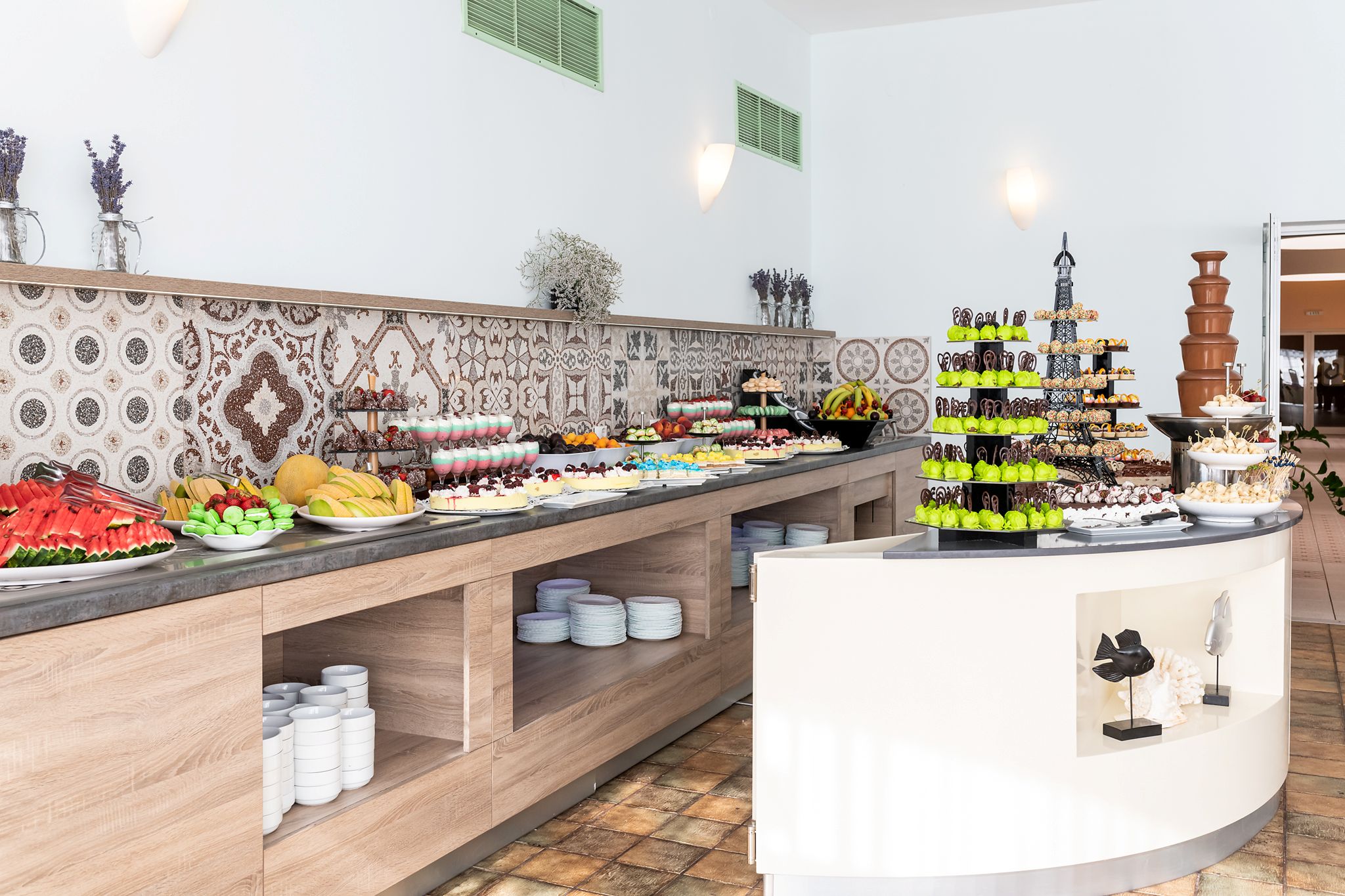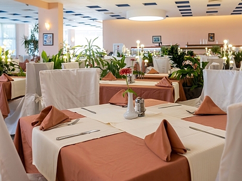 Restaurant principal cu 400 de locuri si cu terasa, lobby bar, bar la piscina cu snack bar si bar Mezzanine.