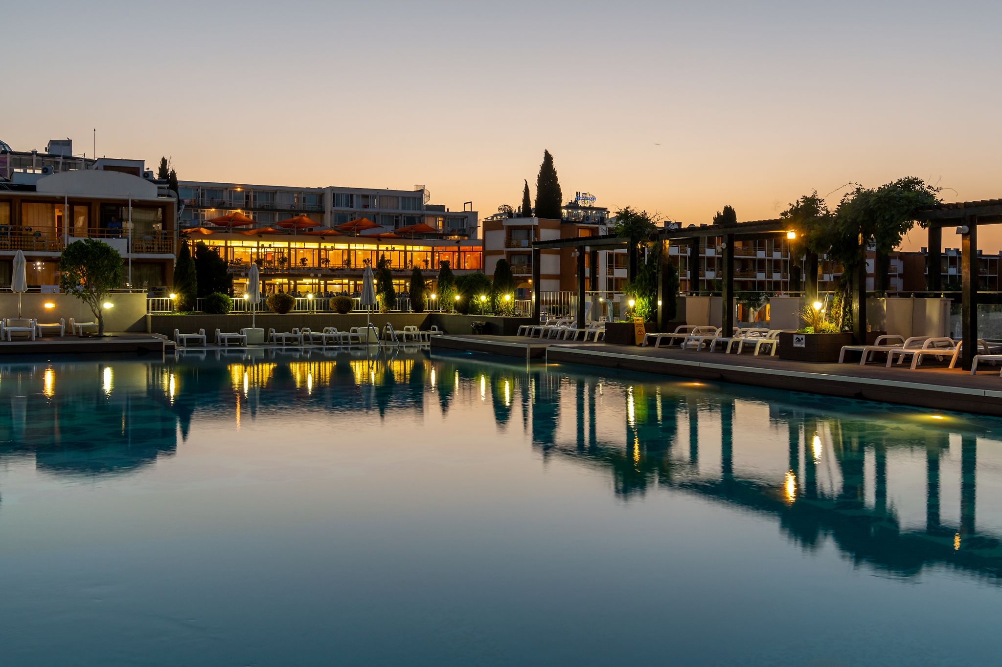 Hotel situat chiar pe plaja , am primit upgrade la camera , absolut fabuloasa camera priveliștea frontala către mare ,o camera de 5 stele nu de 4 ,cu doua balcoane ,baie mare cu cada ,tv Smart , cichineta ,pat matrimonial in dormitor plus canapea in antecamera ...condiții de top .Băuturi ok mâncare la fel ,piscina mare plus alte două una cu topogane alta pt copii ,bar la piscina .Recomand acest hotel .