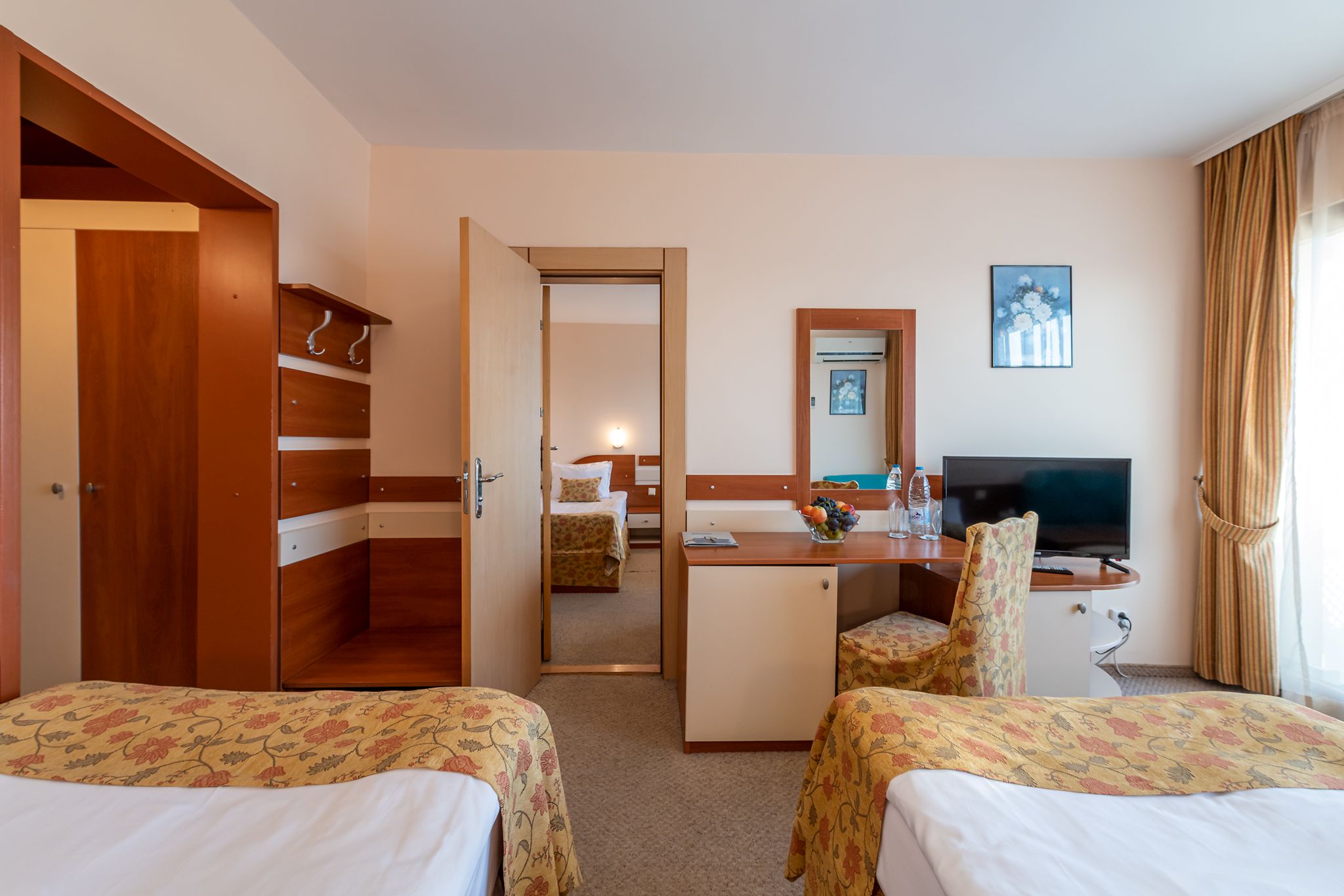 • Family room (aprox. 38 mp) consta in doua camere standard conectate printr-o usa. Ofera vedere laterala la mare.