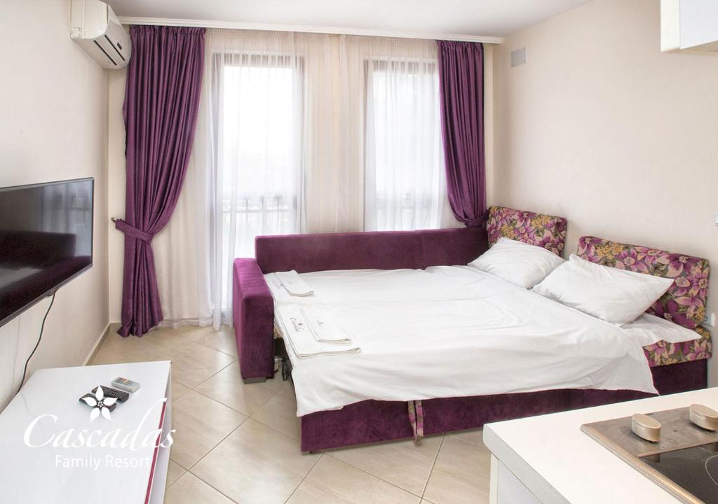 Cascadas Family Resort este un complex de apartamente cu o combinație unică de locație strategică pe litoralul bulgaresc, soluții inovatoare exterioare și interioare, condiții excelente de sport și divertisment pentru fiecare membru al familiei, pentru vacante pe tot parcursul anului. La numai 600m de plaja din Sunny Beach este o alegere perfecta pentru sejururile de familie.