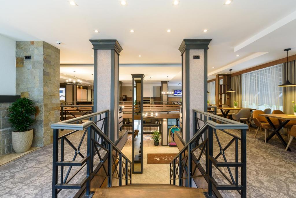 Cazare: Hotelul este dotat cu trei etaje ce dispune de patru lifturi, a fost construit în 2003, complet renovat în 2023 și oferă cazare în total în 160 de camere, dintre care 62 camere duble, 68 camere twin, 9 apartamente cu un dormitor, 16 suite loft și 5 camere duble pentru persoane cu dizabilități. Majoritatea unităților de cazare au o terasă separată, care oferă o vedere fie către munte, fie către oraș, fie către grădina hotelului. Încălzirea este locală.