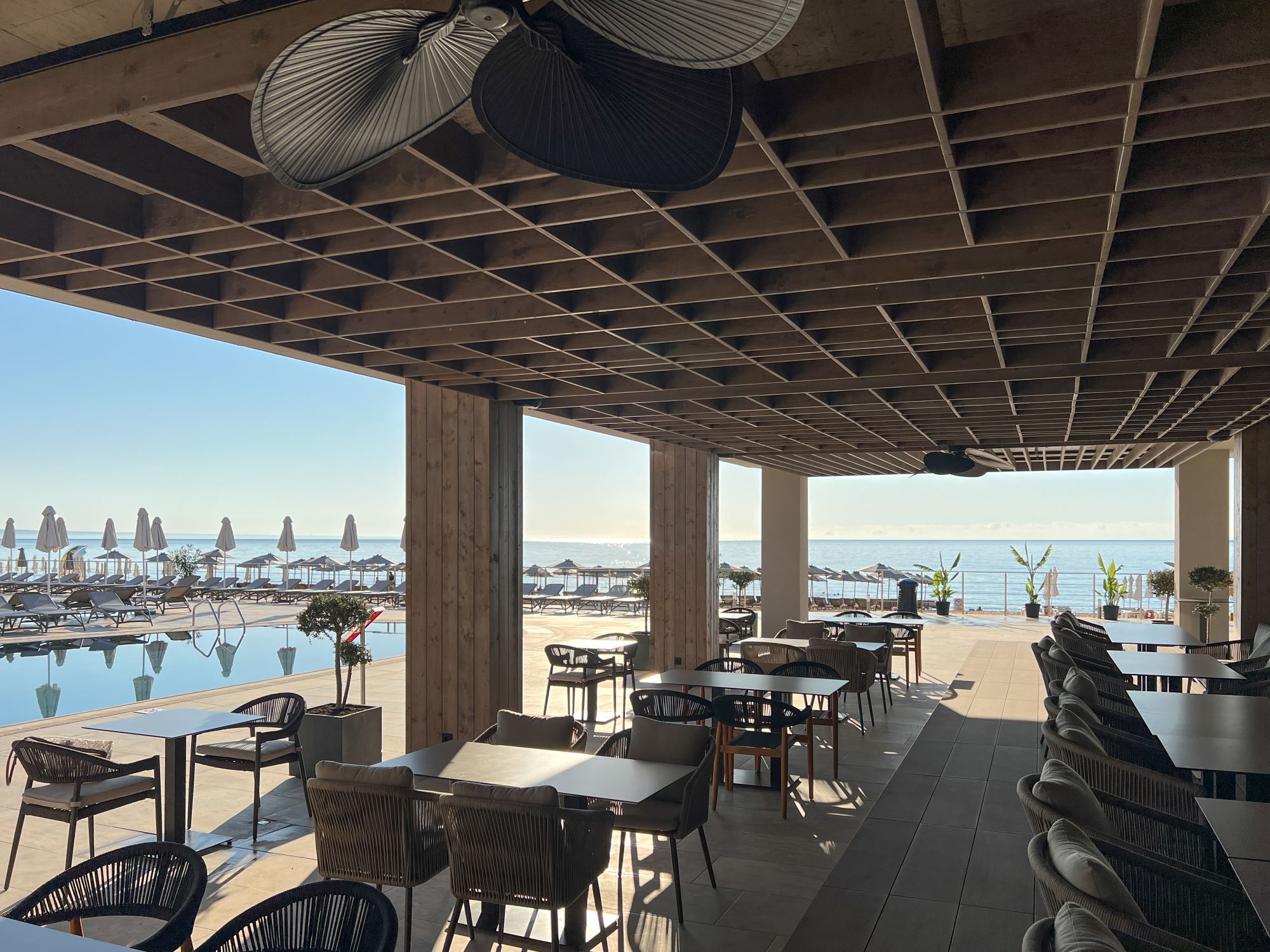 Restaurant Terrazza de tip bufet, pentru oaspetii cazati in camerele duble standard (cladirea adiacenta, fostul GRIFID Moko) - cu mancare delicioasa servita intr-un cadru spatios, cu design interior modern si o terasa relaxanta in aer liber, cu vedere spre mare. Bufet generos pentru copii. Bauturile sunt servite de catre ospatari, la mese.