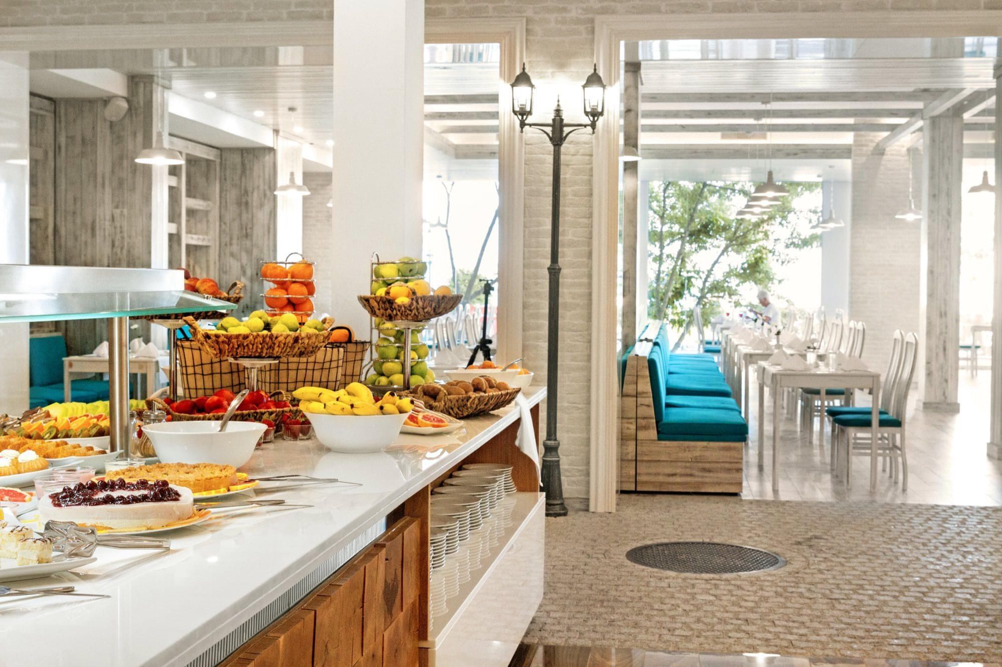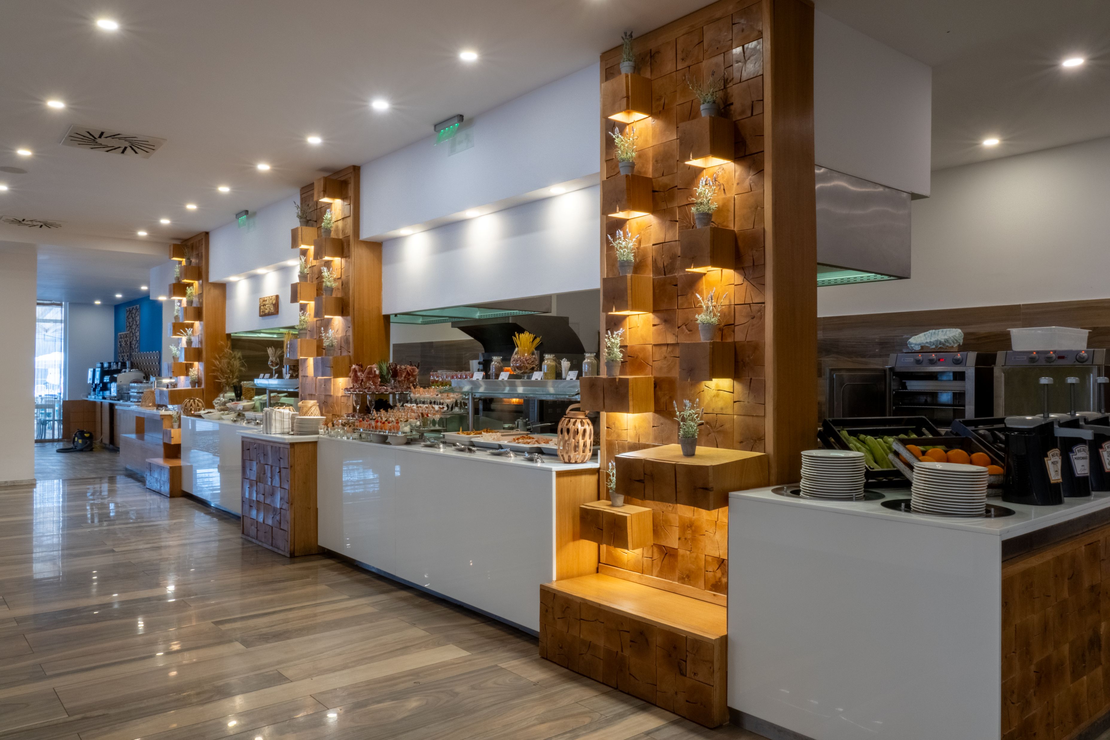 Restaurant cu terasa (300 de locuri in interior si 120 de locuri in aer liber-exista zona desemnata numai pentru adulti), NOU: terasa lounge & bar adults only cu efect infinity si vedere catre mare, restaurant bulgaresc Enoteca a-la-carte (necesita rezervare in prealabil), cabina cu inghetata pe plaja (12:00-17:00), SENSO bar, bar la plaja si la piscina, Blue bar (lobby bar), snack