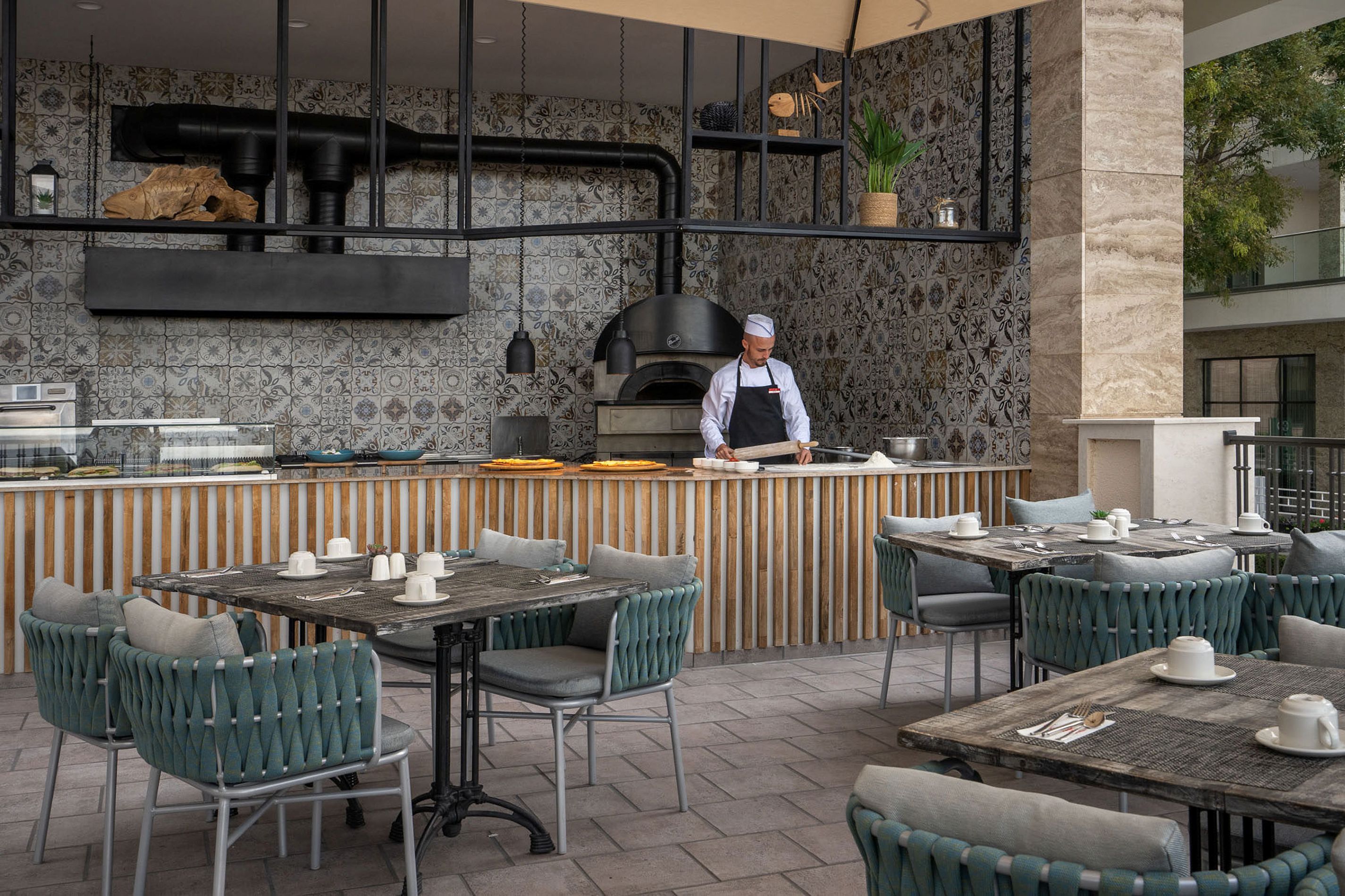carte Furna-ta cu specific italian (pentru cina), restaurant a la carte Karmare cu specific bulgaresc (pentru cina), restaurant cu specific european si asiatic (pentru cina), corner Sofra (pentru mic dejun) si statie de limonada (pe parcursul zilei), sky bar & restaurant Pagur pentru oaspetii camerelor concept 16+.
