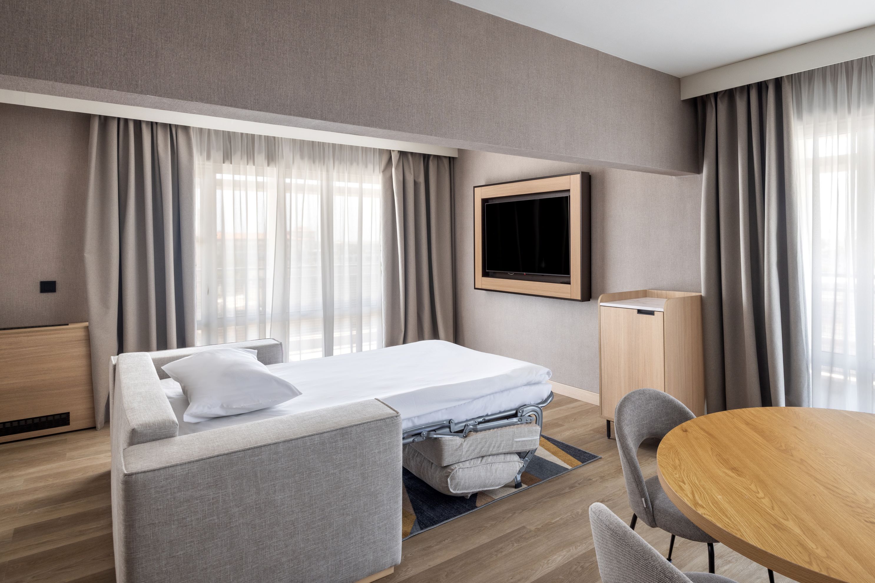 Hotel IM Dreamer ofera cazare in camere duble deluxe si apartamente renovate in 2024 si 2025, cu vedere la parc sau la mare, dotate cu balcon, aer conditionat individual, minibar (contra cost), seif, telefon, TV, Wi-Fi.