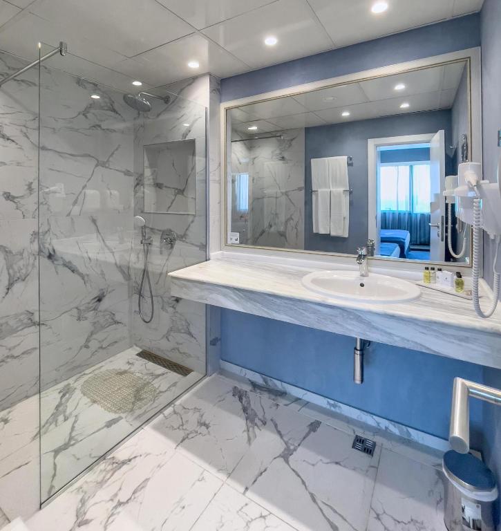 Hotelul pare cel mai frumos/impunator din statiune, si este pozitionat excelent. Recomand camerele cu balcon si vedere la mare, view-ul este superb in orice moment al zilei. Piscina este top, cu dj si vibe de club, doar ca preturile la bar sunt pe masura. Sunt doar 3 lifturi, care sunt insuficiente pentru aglomeratia care se face la ora meselor (cam asta ar fi cel mai mare inconvenient la acest hotel). Mancarea este buna, si nu raman niciodata tavile goale. Angajatii sunt toti la costum/uniforma si se comporta frumos, nimic de reprosat aici. Per total, acest hotel iti ofera o vacanta excelenta (a fost lucrul care mi a placut cel mai mult la aceasta statiune, in rest, atmosfera e cam ca pe litoralul romanesc), doar ca iti ofera strict serviciile pe care le ai in oferta prezentata, in rest te taxeaza pentru orice (ex: capsula de cafea din camera e 2,3 euro, ceea ce mi se pare mult, in ideea in care la camere de 300 lei pe noapte la alte hoteluri este gratis).
