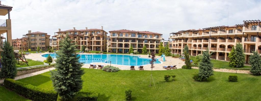 Resortul se afla situat in localitatea Topola, la mica distanta de Balcic (~14Km) si de Kavarna (~8km) intre aceste doua localitati. Amplasamentul este superb intr-o zona muntoasa de la care se poate cobori usor spre plaja. Privelistea de la restaurantul hotelului cat si de pe cararea de munte care duce spre mare iti taie respiratia. Daca vreti o vacanta in care sa aveti parte atat de munte cat si de mare atunci aceasta ar fi locatia ideala. Plaja cea mai apropiata este Adora Beach la care se poate ajunge coborand de pe munte in aproximativ 15 minute sau cu masina in 7-8 minute. O alta plaja la care se poate ajunge cu masina in 8-10 minute este Heros Beach. Ambele plaje sunt micute si nu foarte aglomerate, potrivite pentru cei care cauta un loc mai retras. Personalul este amabil si saritor chiar daca nu toti inteleg si vorbesc limba engleza. Resortul este foarte ok din punct de vedere a masurilor anticovid: personalul poarta masca si/sau viziere, exista dispencere de gel dezinfectant peste tot unde exista acces comun (receptie, intrare restaurant, sala de fitness, etc.), apartamentele sunt distribuite cate 2 pe etaj in vilele din jurul piscinelor, restaurantul este de fapt o terasa acoperita, mesele se dezinfecteaza de indata ce masa este eliberata. Au foarte multe facilitati in interior sau in imediata apropiere insa e bine de stiut ca cele mai multe au costuri aditionale (tenis, calarie, tras cu arcul, golf, aquapark etc.). De asemenea se pot inchiria biciclete pentru drunmetii. Gratuite sunt piscinele (sunt 5 in total) , tenisul de masa, sala de fitness, lectii de yoga, etc. Mancarea este foarte buna, foarte diversificata si proaspata. Noi am avut doar micul dejun inclus (bufet suedez) insa am luat si cina de cateva ori contra cost. La micul dejun nu a lipsit absolut nimic si am fost foarte multumiti. Pentru cina trebuie insa sa iti faci rezervare cu 2-3 zile inainte deoarece sunt foarte aglomerati. Una peste alta o locatie in care vom reveni cu placere si pe care o recomandam cu caldura tuturor.
