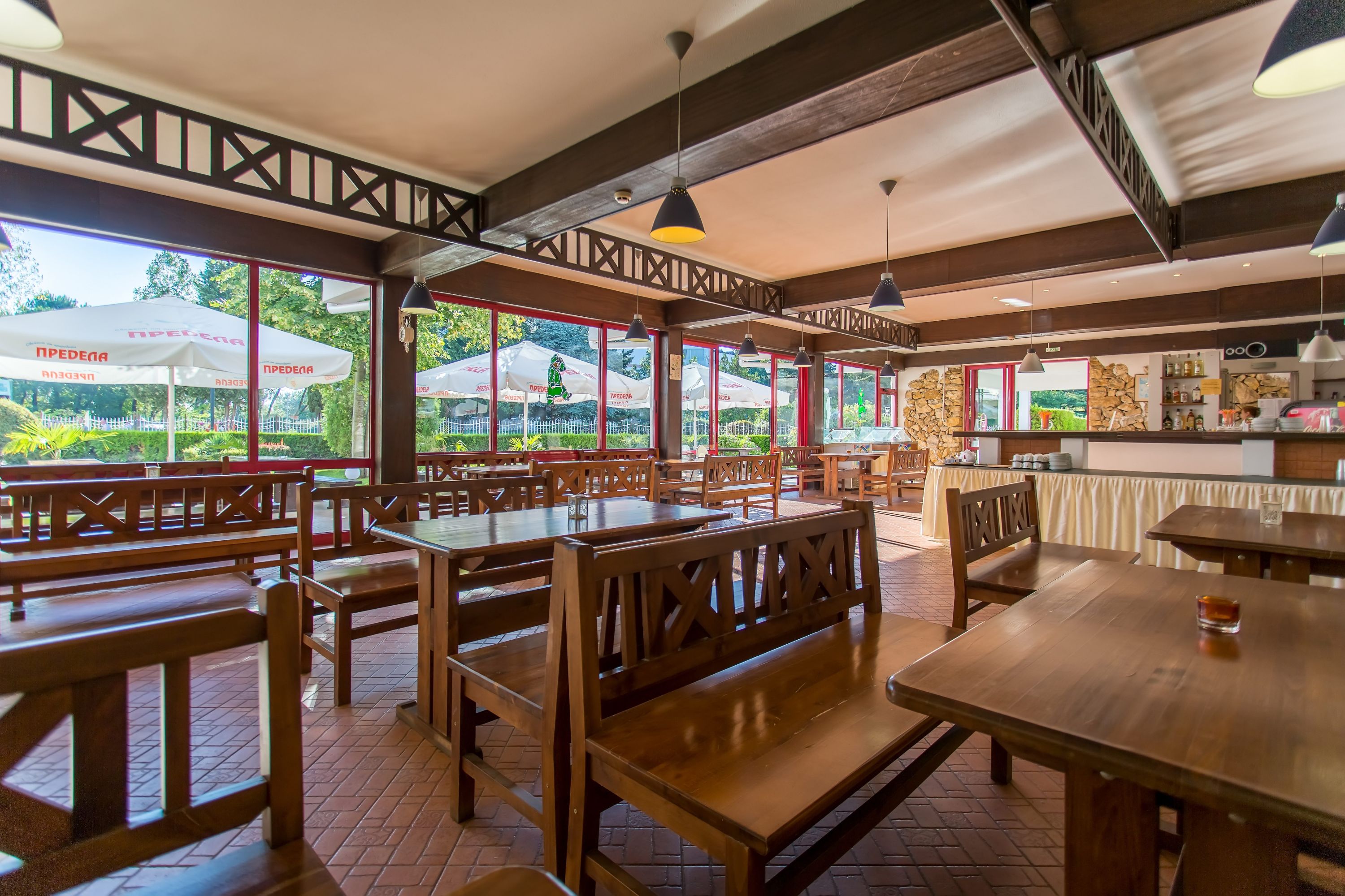 restaurant principal cu terasa si servire in stil bufet (mic dejun, pranz si cina), restaurant snack/pub (pentru brunch, corner dulciuri, gustari), bar la piscina.