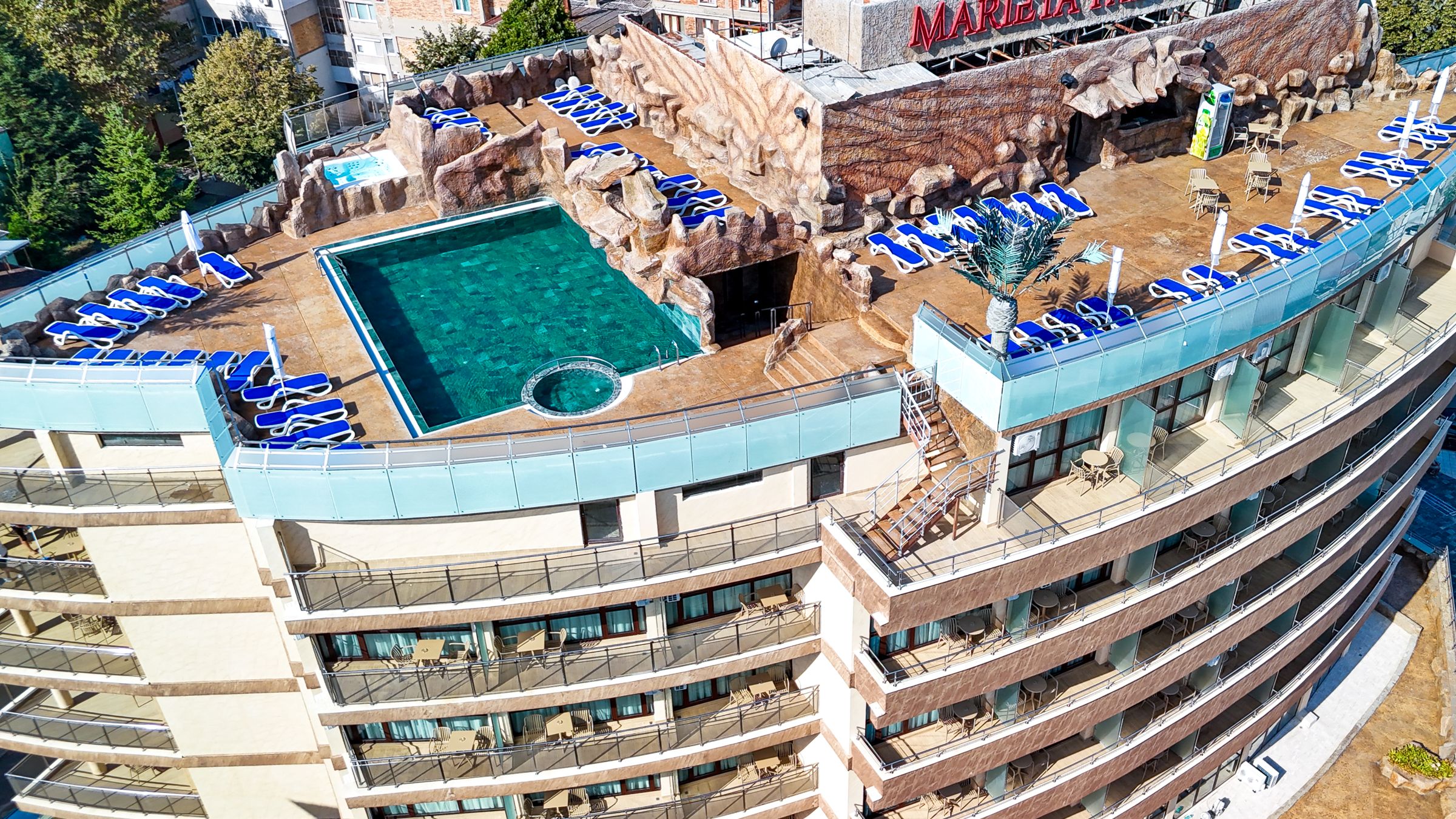 Hotel liniștit, cu servicii bune, cu o piscina curata și o panorama minunata a orașului și a stațiunii.