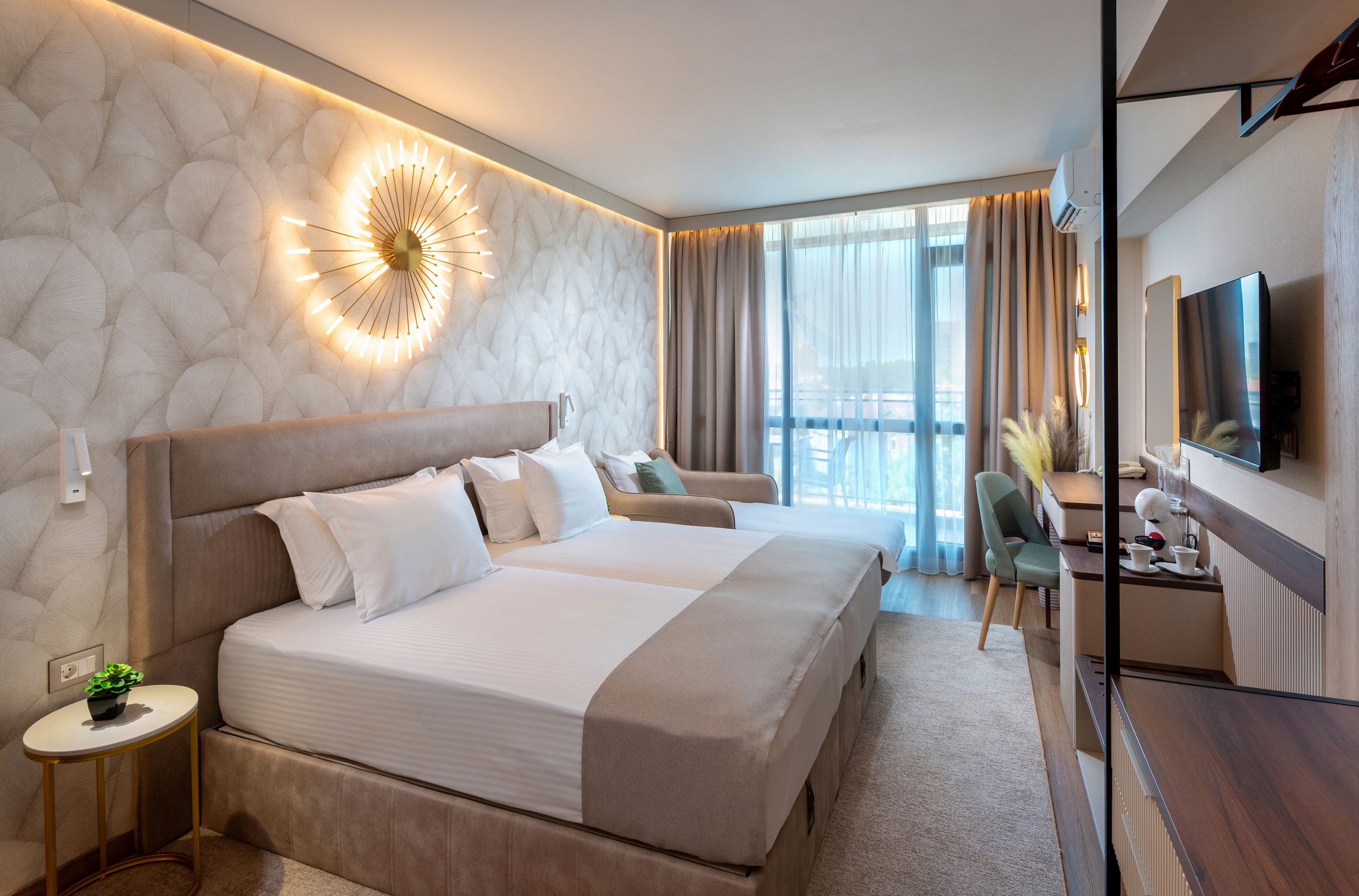 Hotelul Marieta Palace este situat in partea noua a orasului, in imediata apropiere a strazilor comerciale din Nessebar si la 400 m de plaja. Renovat in 2025, hotelul se remarca printr-o arhitectura moderna si este situat la o distanta de aproximativ 400 m de plaja orasului si la circa 1 km de Orasul Vechi. Este unul din hotelurile care ofera cazare eleganta intr-o atmosfera de vacanta relaxanta, potrivit pentru un sejur pe litoralul bulgaresc.
