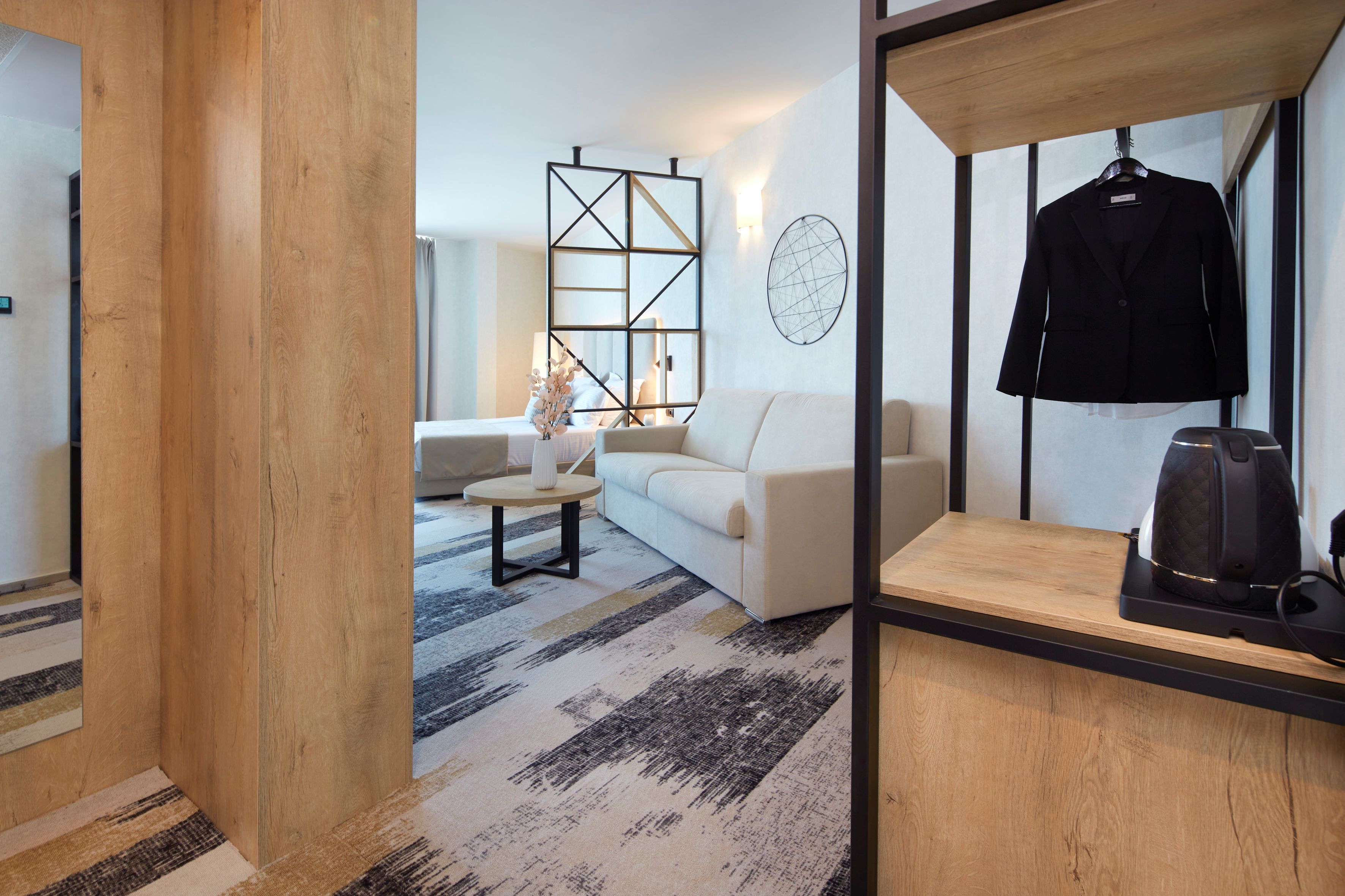 Toate camerele dispun de aer conditionat centralizat, tv cablu, mini frigider, telefon, wi-fi, pat suplimentar (canapea), mocheta, baie, uscator de par, balcon mobilat, fierbator.