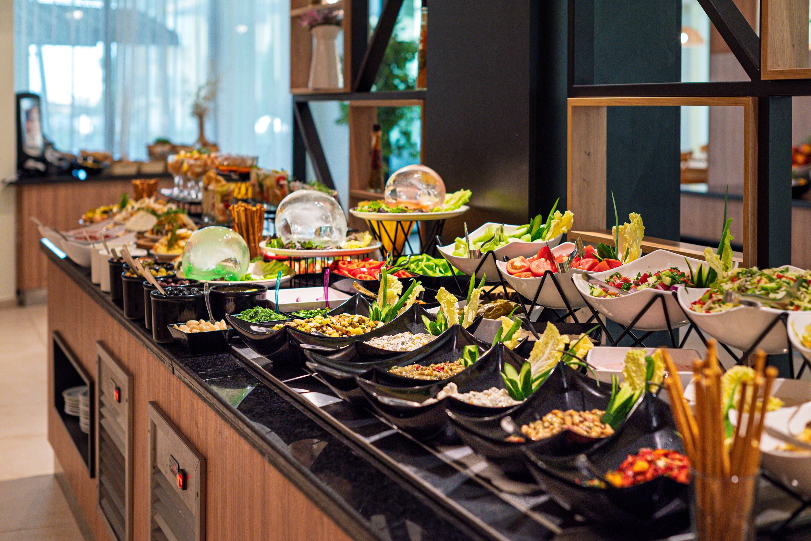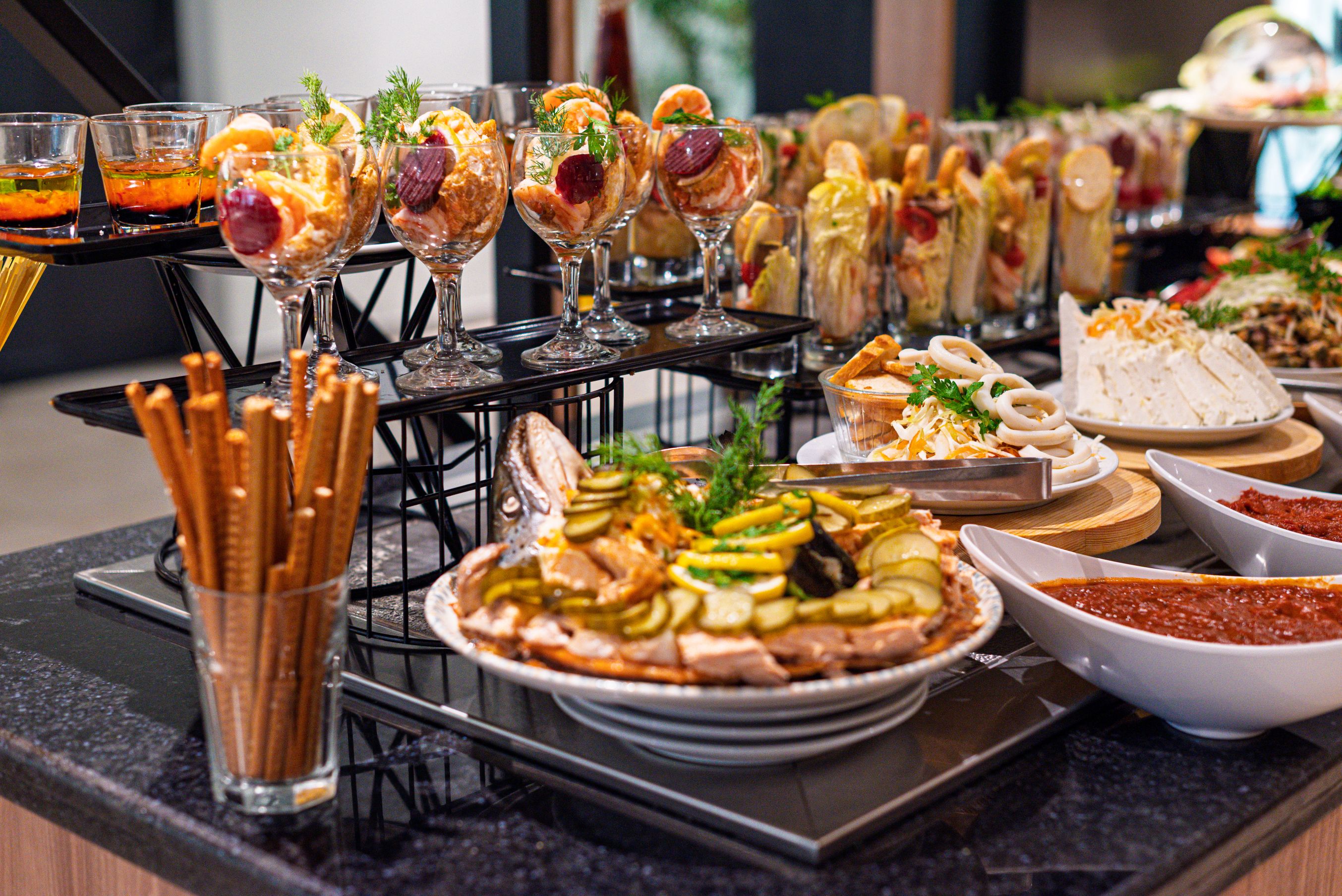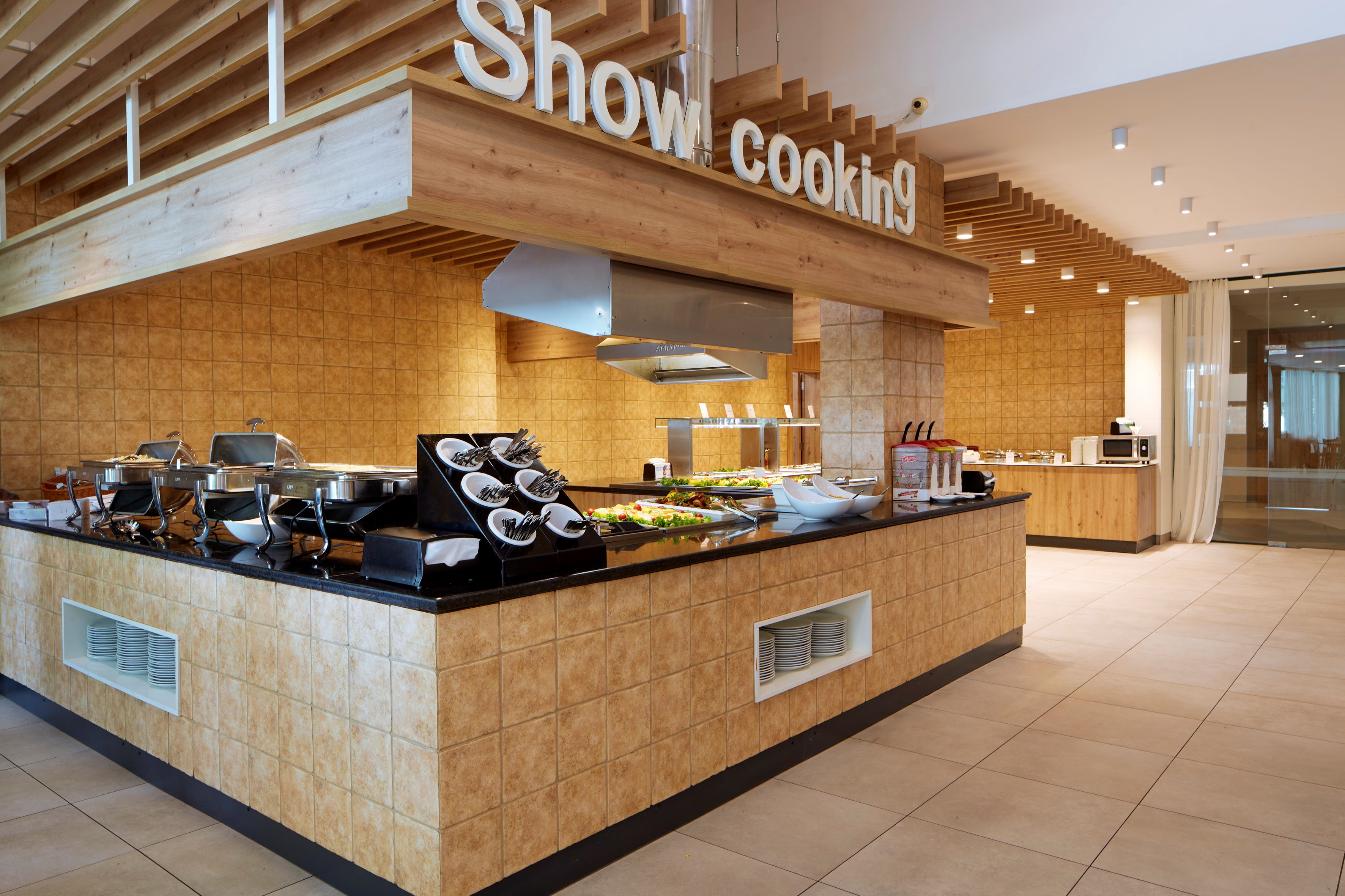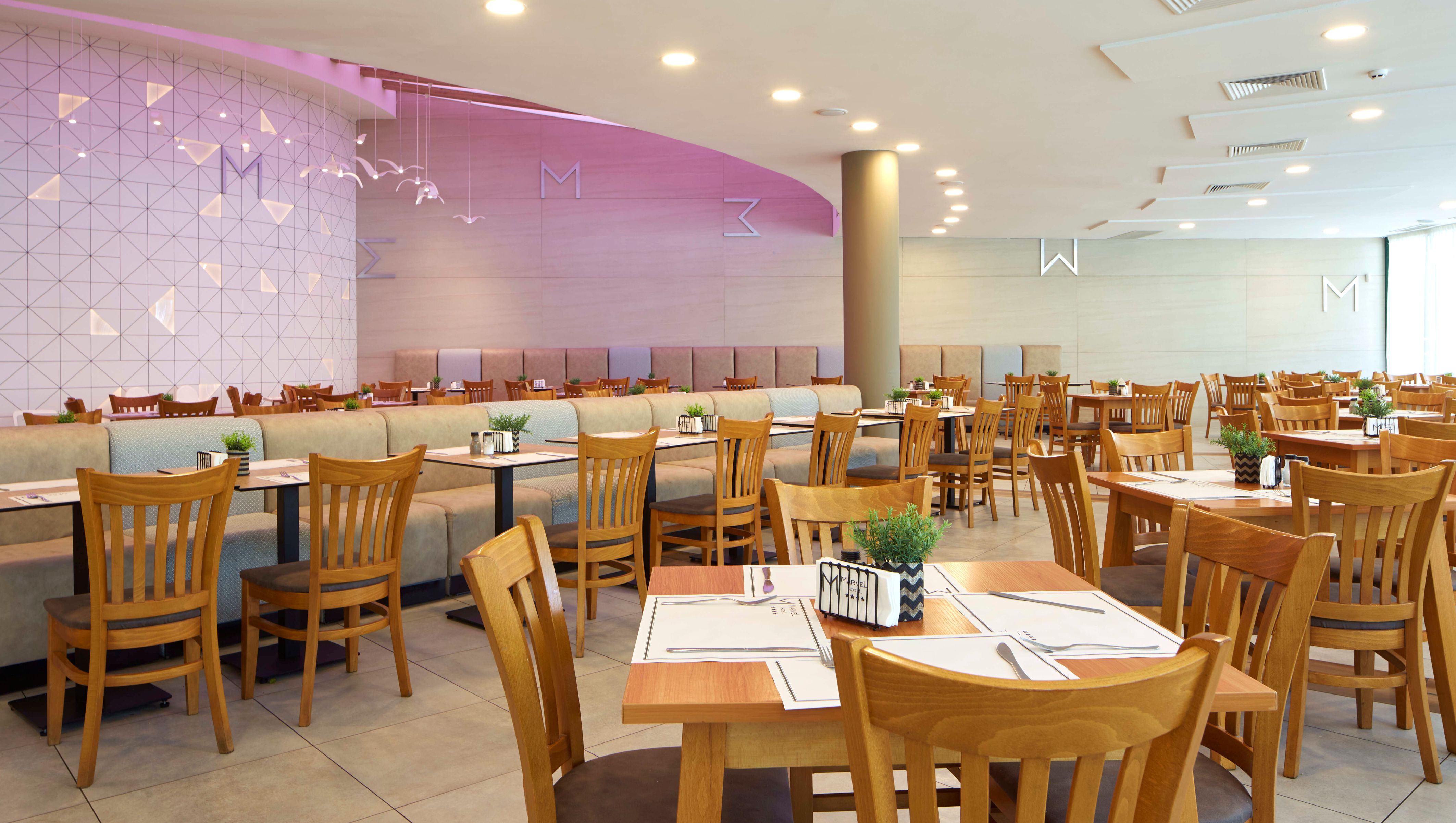 3 restaurante: 2 restaurante all inclusive (Bendida si Ambrosia) si un restaurant à la carte Crown Pub by Madri (Steak House - NOU), lobby bar, bar la piscina si bar Marvel (all inclusive), meniu vegetarian pentru prânz și cină (paste, tocană de legume, risotto, cartofi prăjiți și fructe de mare).