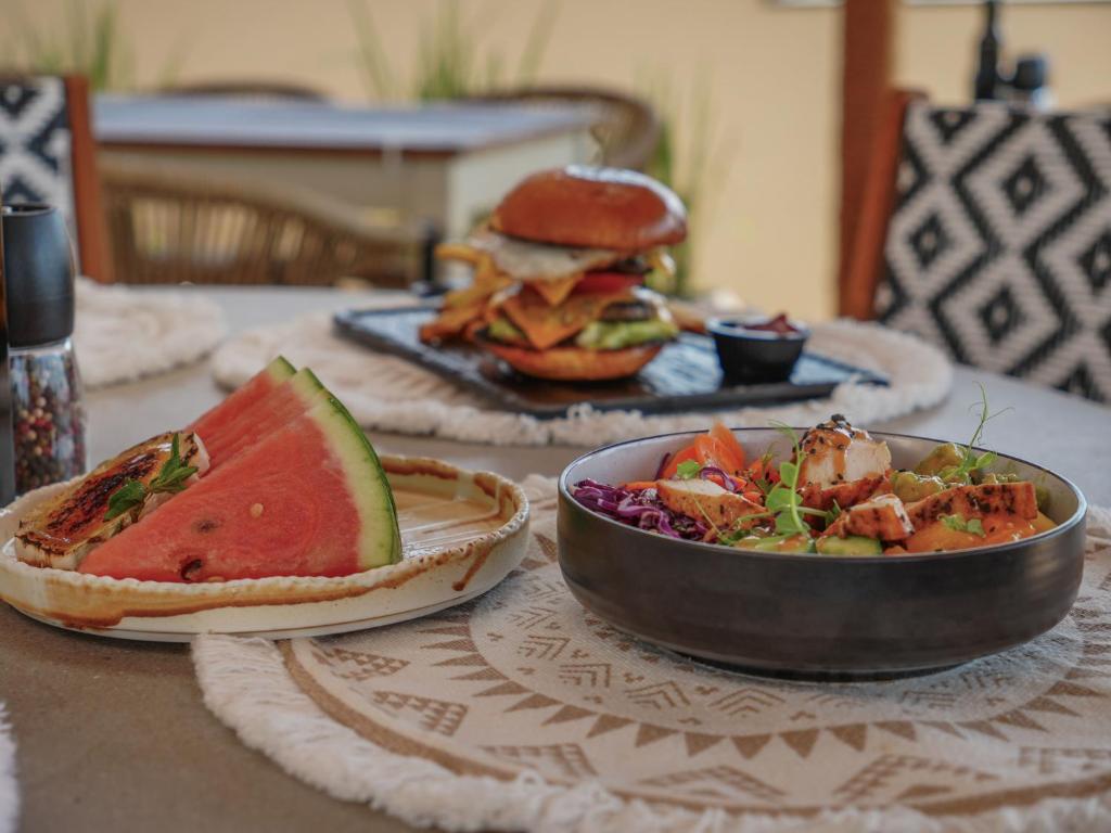 Hotelul are un restaurant cu terasa langa malul marii, ce ofera specialitati locale si europene si un lobby bar.