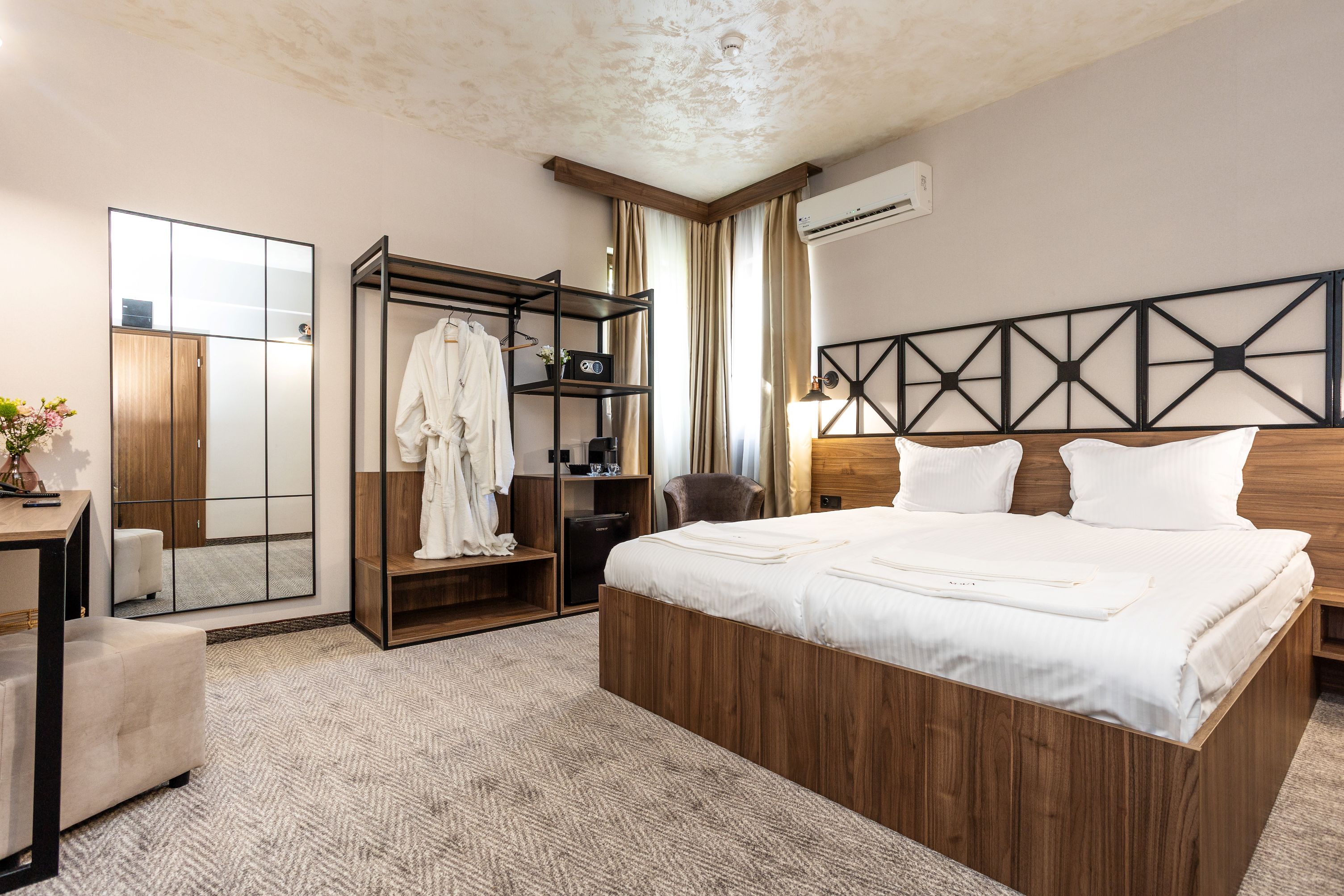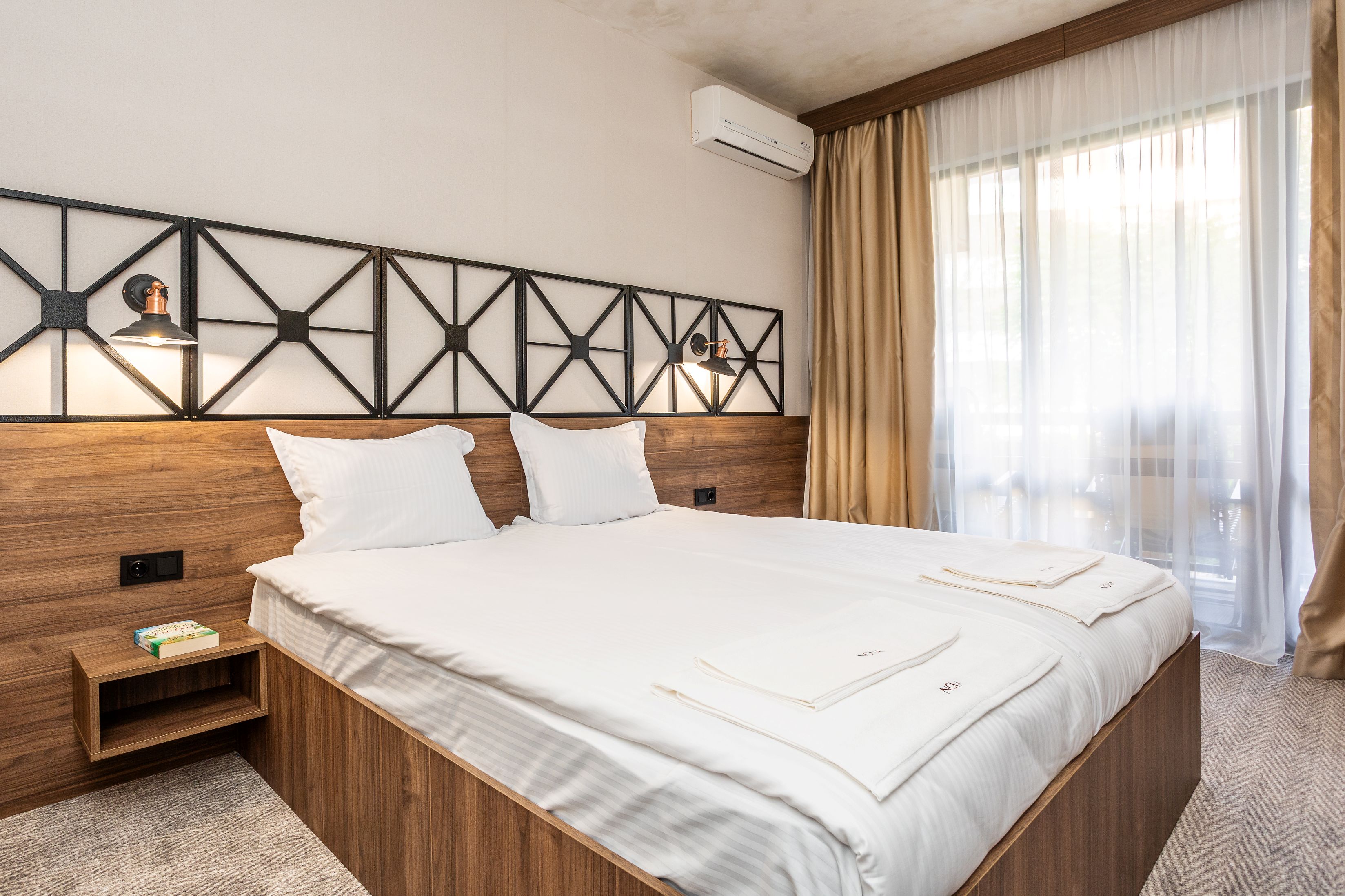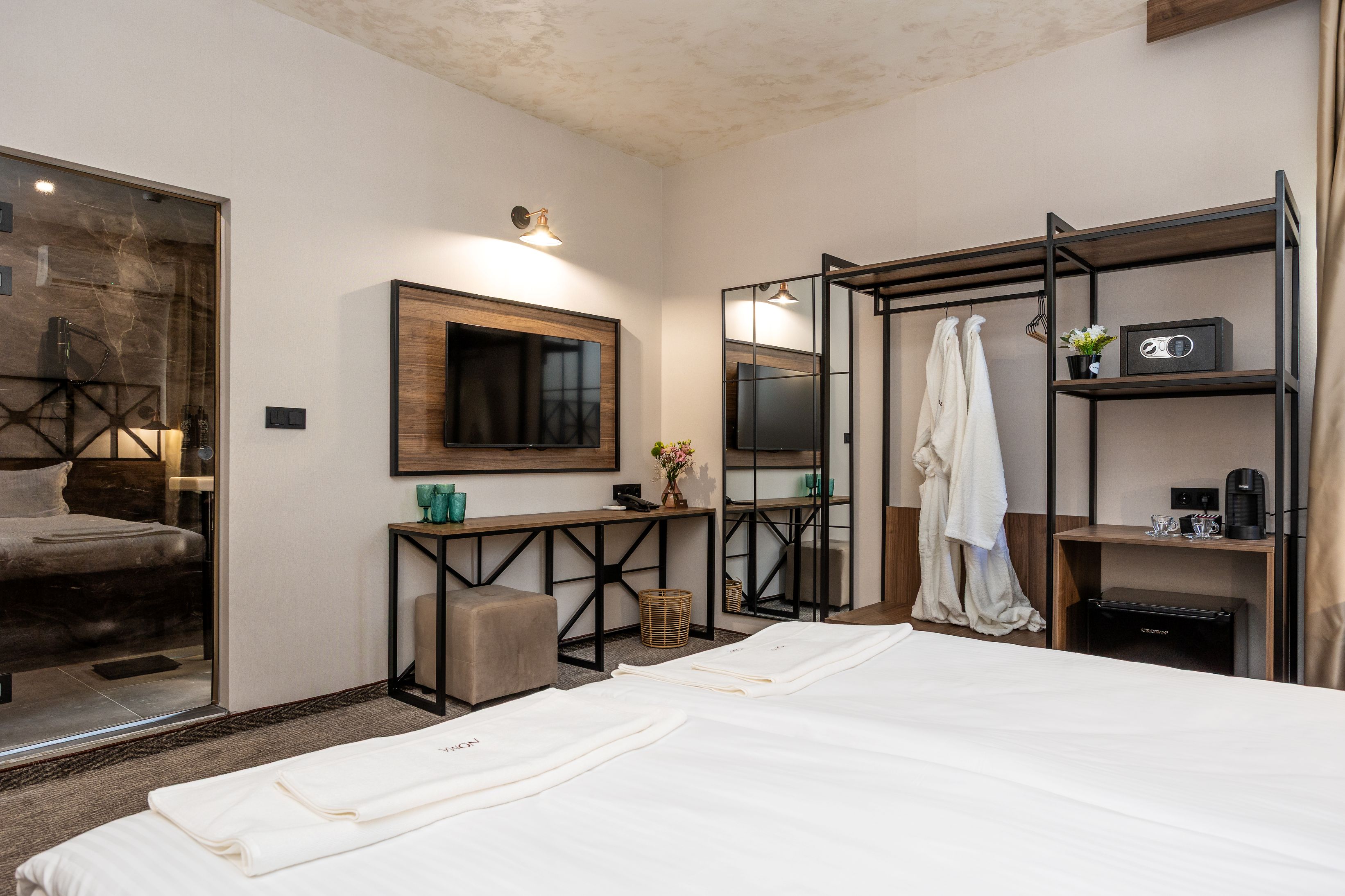 Hotel Noma Boutique ofera cazare in camere duble standard, camere duble deluxe, studiouri si apartamente cu un dormitor, dotate cu aer conditionat individual, balcon sau terasa, Wi-Fi, aparat de cafea cu capsule si set de ceai, mini bar, tv, seif, baie cu dus dotata cu set de cosmetice, uscator de par, halat, papuci.