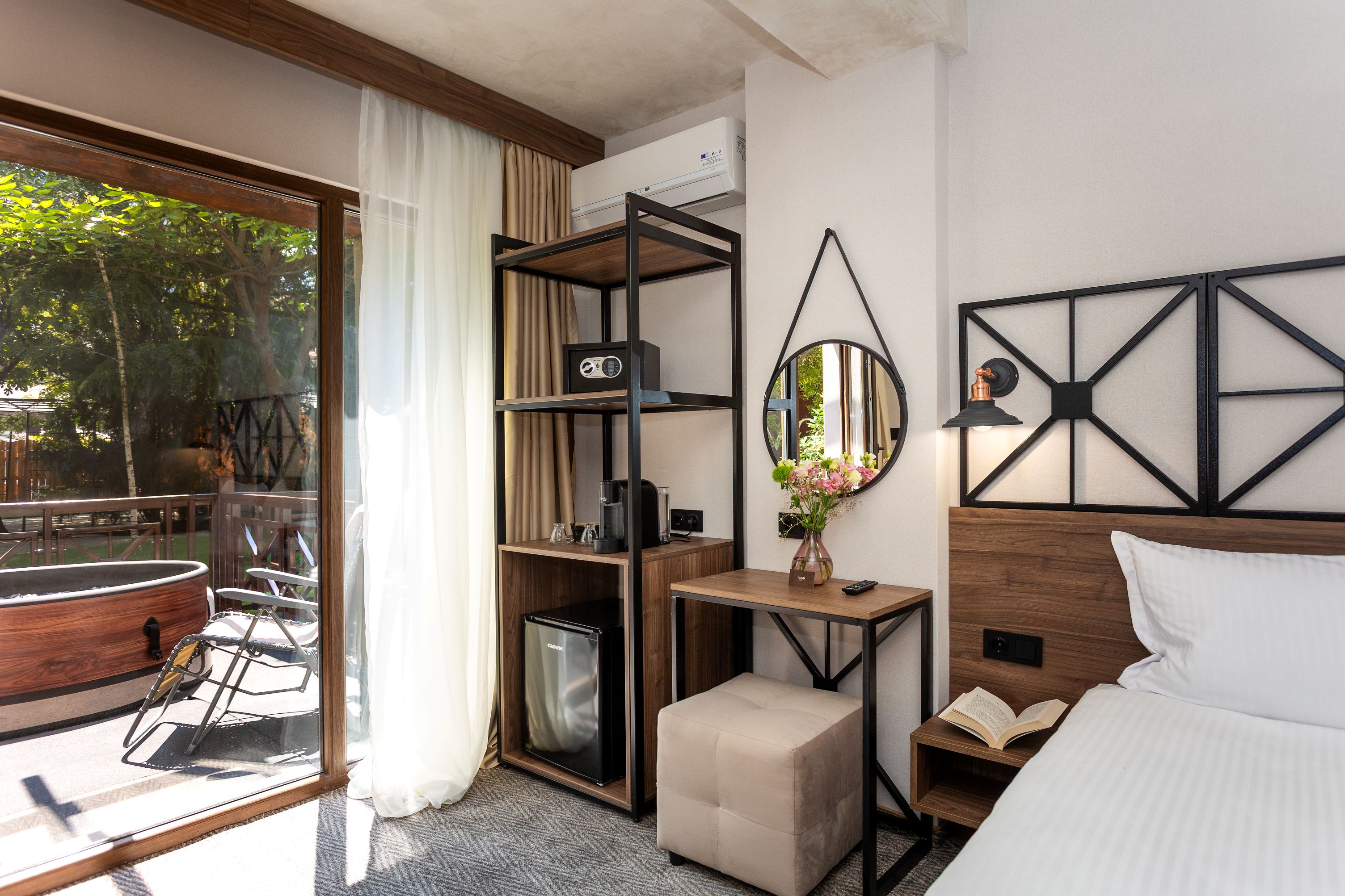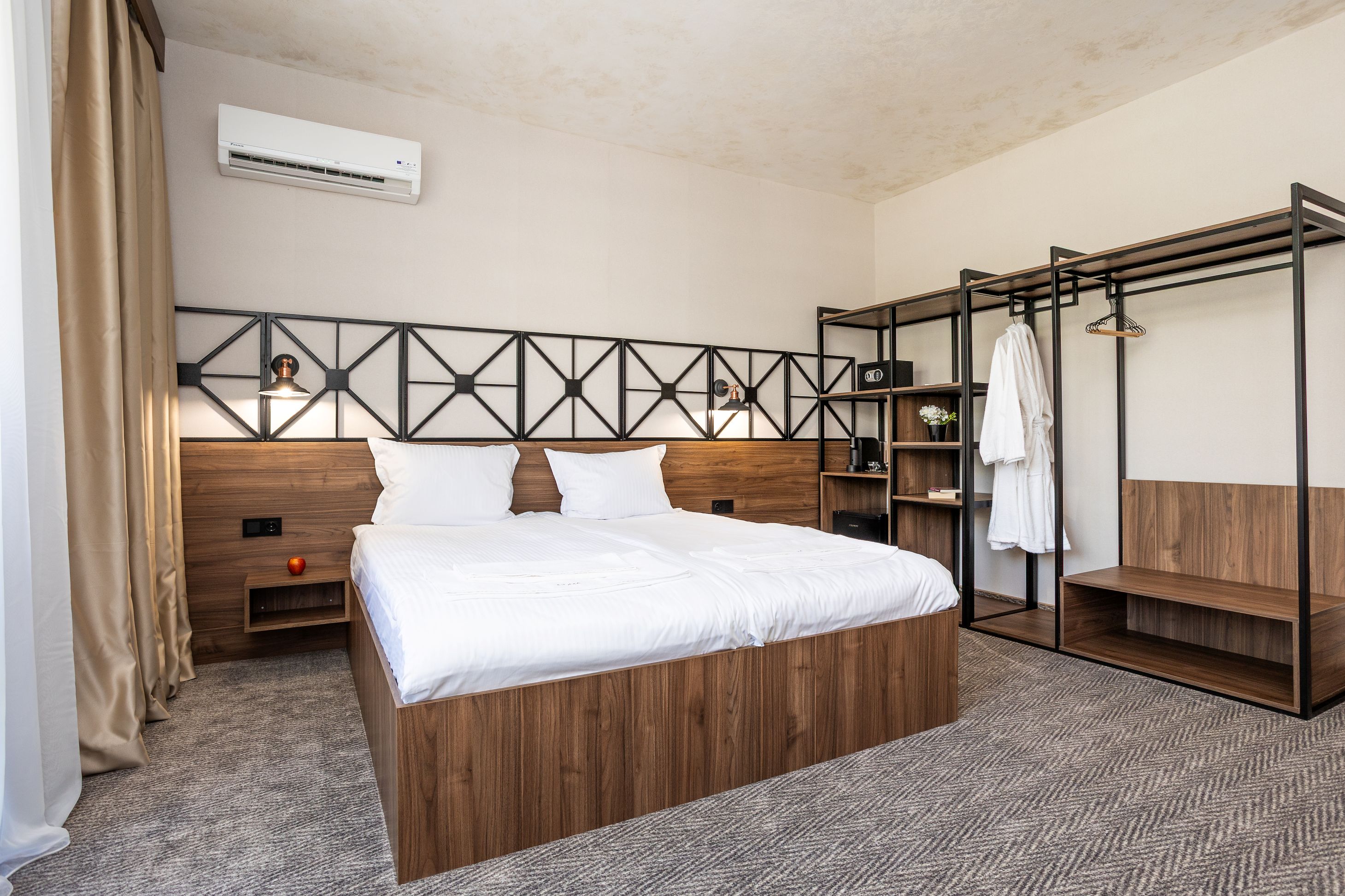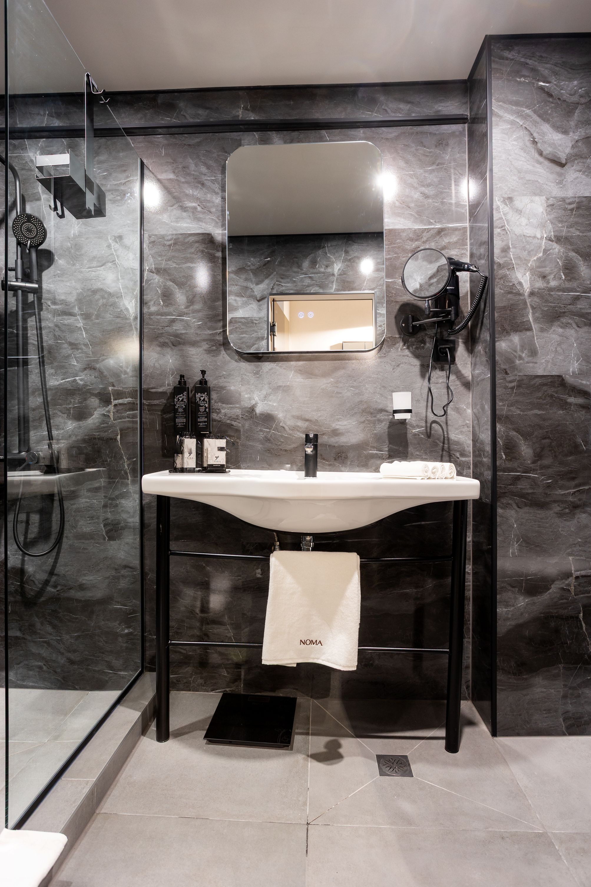 Hotel Noma Boutique ofera cazare in camere duble standard, camere duble deluxe, studiouri si apartamente cu un dormitor, dotate cu aer conditionat individual, balcon sau terasa, Wi-Fi, aparat de cafea cu capsule si set de ceai, mini bar, tv, seif, baie cu dus dotata cu set de cosmetice, uscator de par, halat, papuci.