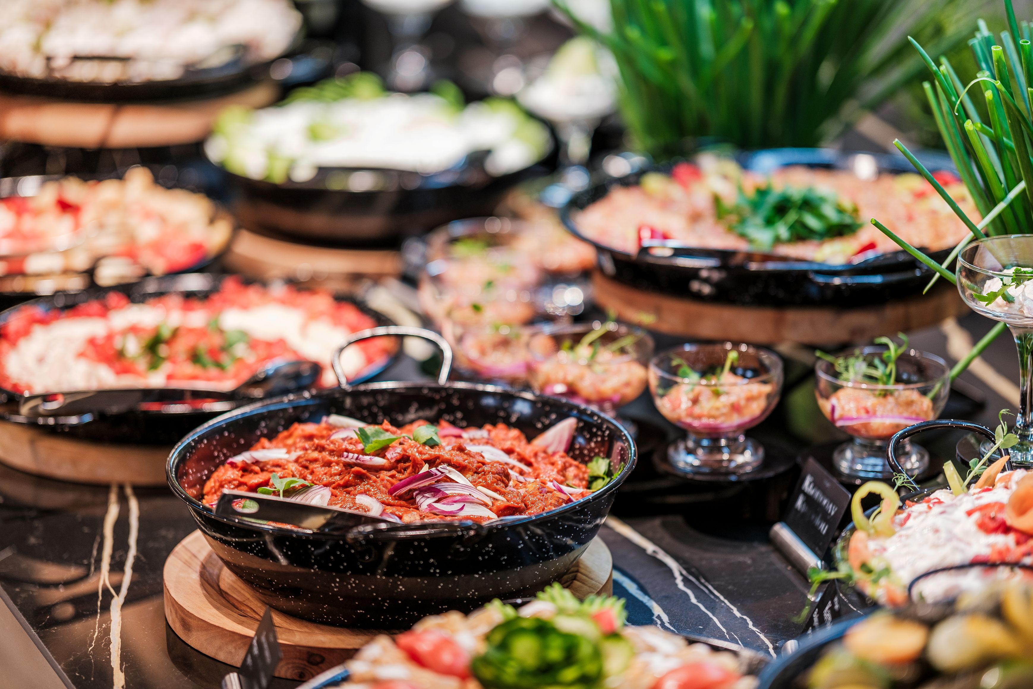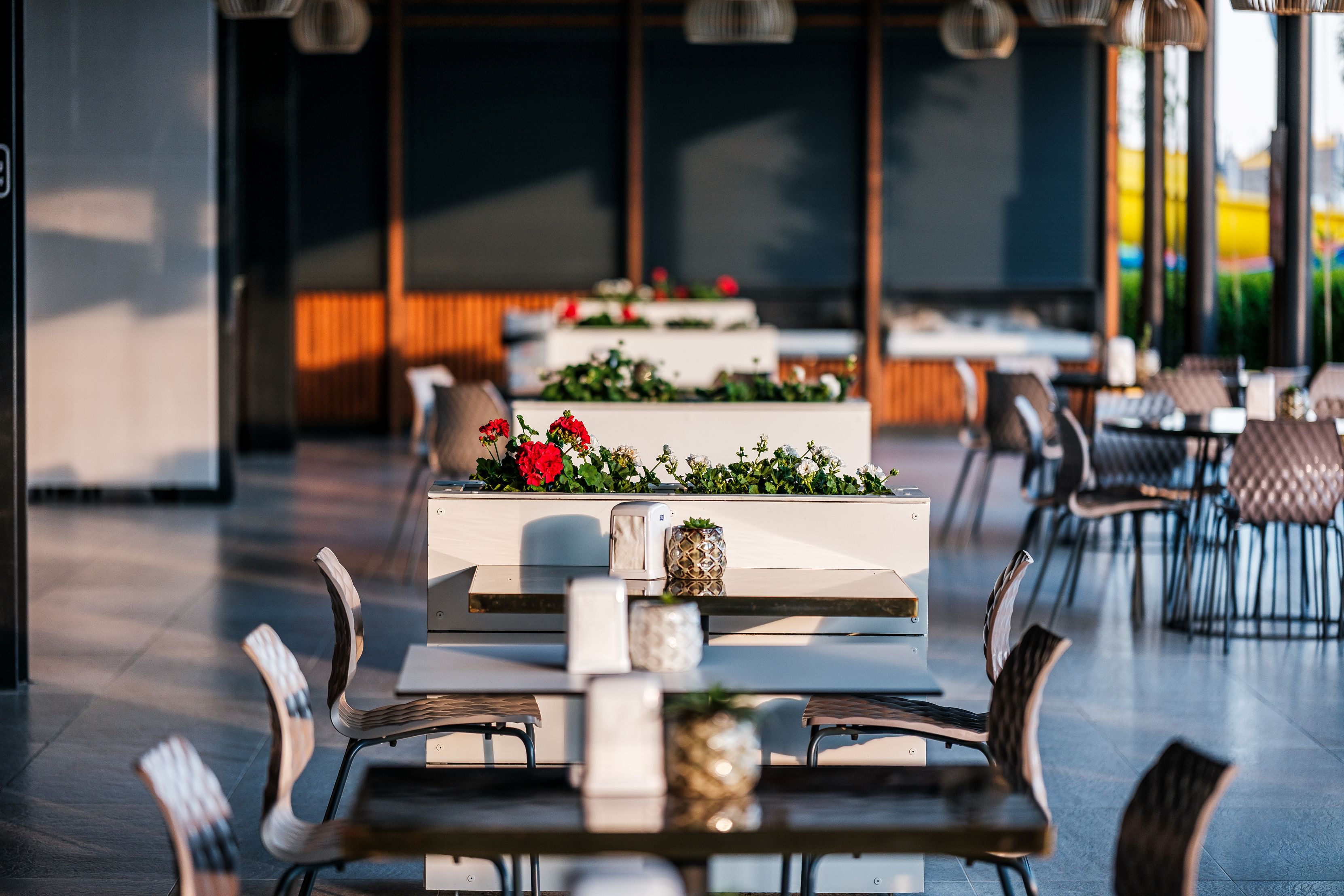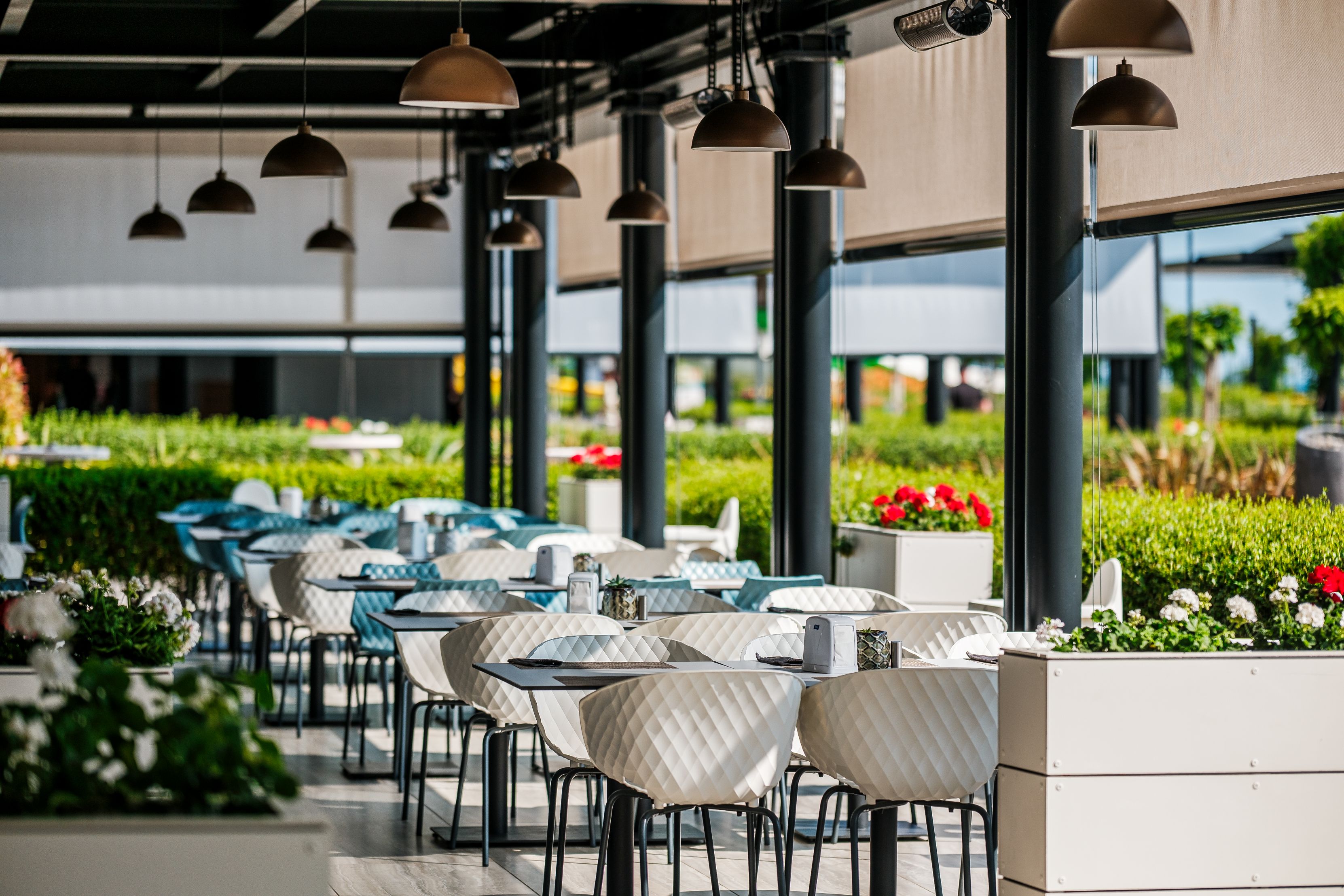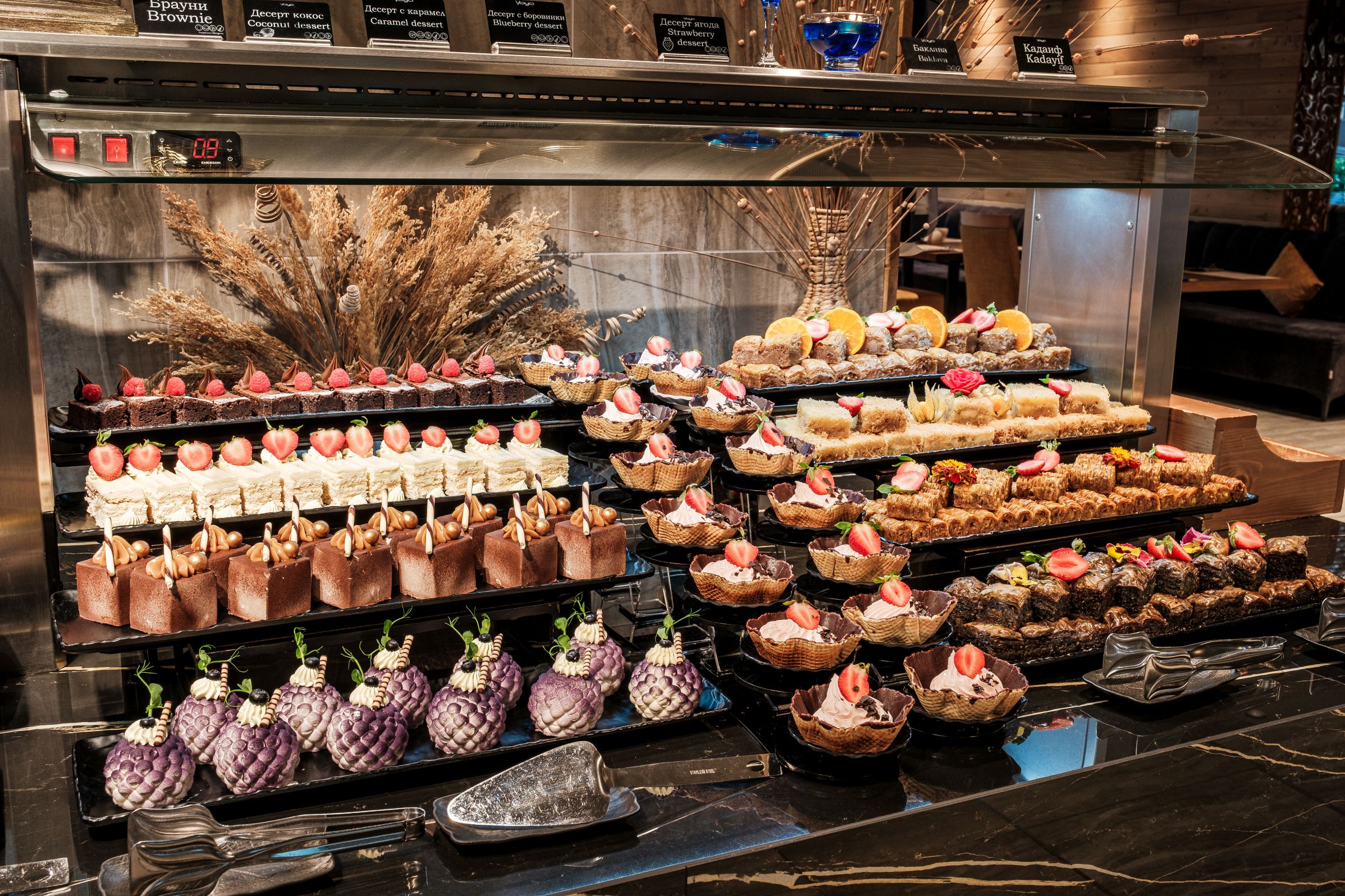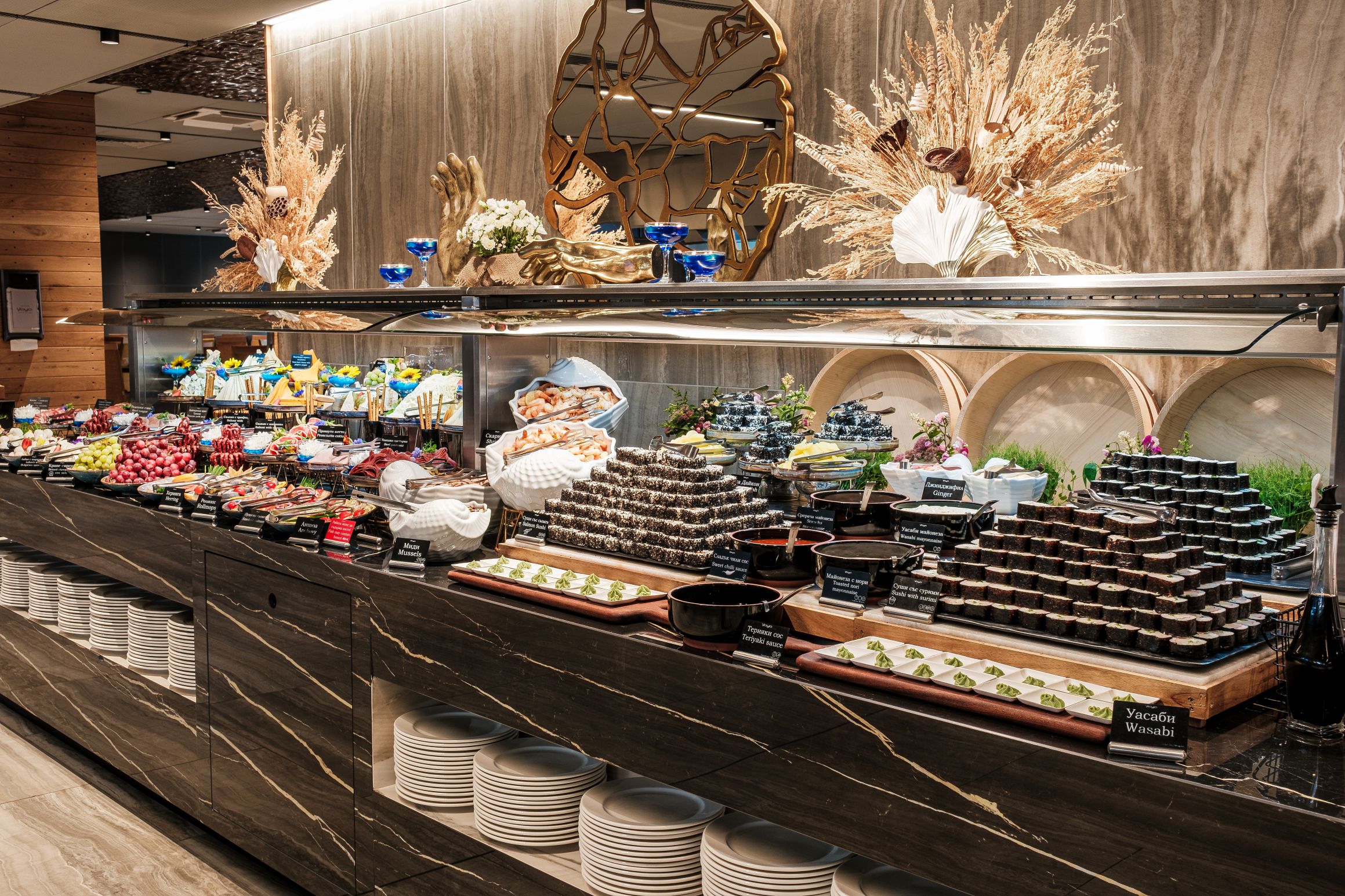 Restaurantul principal in stil bufet, Chef's Market, ofera o selectie de preparate din bucataria bulgara si internationala, colt cu preprate vegane si gourmet internationale in anumite zile ale saptamanii. Are si o terasa in aer liber. Restaurante a la carte.