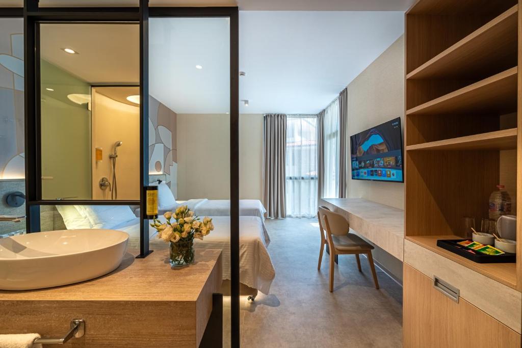 Hotelul ofera cazare in 284 de camere si suite frumos mobilate si decorate, toate unitatile fiind dotate cu tv satelit, aer conditionat, seif, minibar, balcon, baie privata cu dus si uscator de par. Cele mai multe dintre camere ofera priveliste spre golful dintre Nessebar si Sveti Vlas.