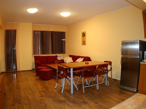 - apartamentul spatios si luminos chiar daca a fost la parter am avut priveliste spre Vf.Todorka - camerele luminate la fel si baia/holul - camerele calduroase, centrala era in hol si in caz de temperatura scazuta se putea creste temperatura cu cateva grade - dotarea bucatariei buna pentru ca a avut tot ce este necesar intr-o bucatarie - schimbarea lenjeriei de pat s-a facut dupa 3 zile de locuit, este in regula - schimbarea prosoapelor la 2 zile , este in regula - curatenia si golitul cosurilor de gunoi zilnic dar nu se curata cu mop-ul perfect in colturi ca acasa (poate suntem prea pretentios in privinta curateniei?) - pentru ca nu era uscator de par in camera am cerut la receptie si am primit imediat - din cei 4 receptioneri vazuti la Receptie numai 1 singur putea lega o conversatie in lb. engleza, altul intelegea dar nu putea raspunde iar ceilalti doi nimic nici inteles nici raspuns noroc cu limbajul universal al semnelor - containerele de gunoi pline care erau exact in fata hotelului si erau golite la 3 zile nu este o imagine primitoare si placuta (acest fapt l-am vazut in toata statiunea de altfel, deci este loc de imbunatatiri) - parcarea mica numai pentru 8 autoturisme necuratat de zapada, fara 4x4 destul de amuzant sa vezi cum iesi sau intri - aleea de intrare in hotel necurata de zapada si gheata , cu claparii se merge destul de greu in astfel de conditii ( noi nu avem 4x4 la clapari deci ... :-)) ) - nu exista un indicator ca sa se poata localiza mai usor hotelul din strada principala si ne-a trebui o ora ca sa-l gasim chiar daca am consultat punctele de informare (trebuie sa ai o harta a statiunii in lb. engleza cel putin)
